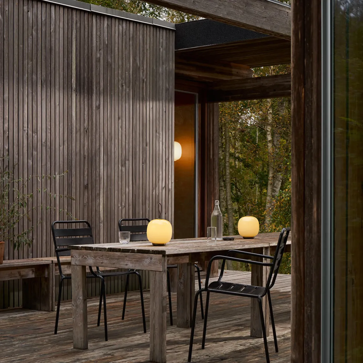 Mit ihrer schlichten Ästhetik und dem sanften Licht schafft die VL 45 Radiohus Portable überall eine warme, stimmungsvolle Atmosphäre. Ob auf der Terrasse im Garten, auf einem Beistelltisch im Wohnzimmer oder in Restaurants und Hotels – die Akkulampe ist nicht nur eine Lichtquelle, sondern auch ein stilvolles Designelement. Dank der schönen Schlaufe aus braunem Echtleder lässt sie sich einfach in die Hand nehmen und auch an Haken oder Zweige hängen.
