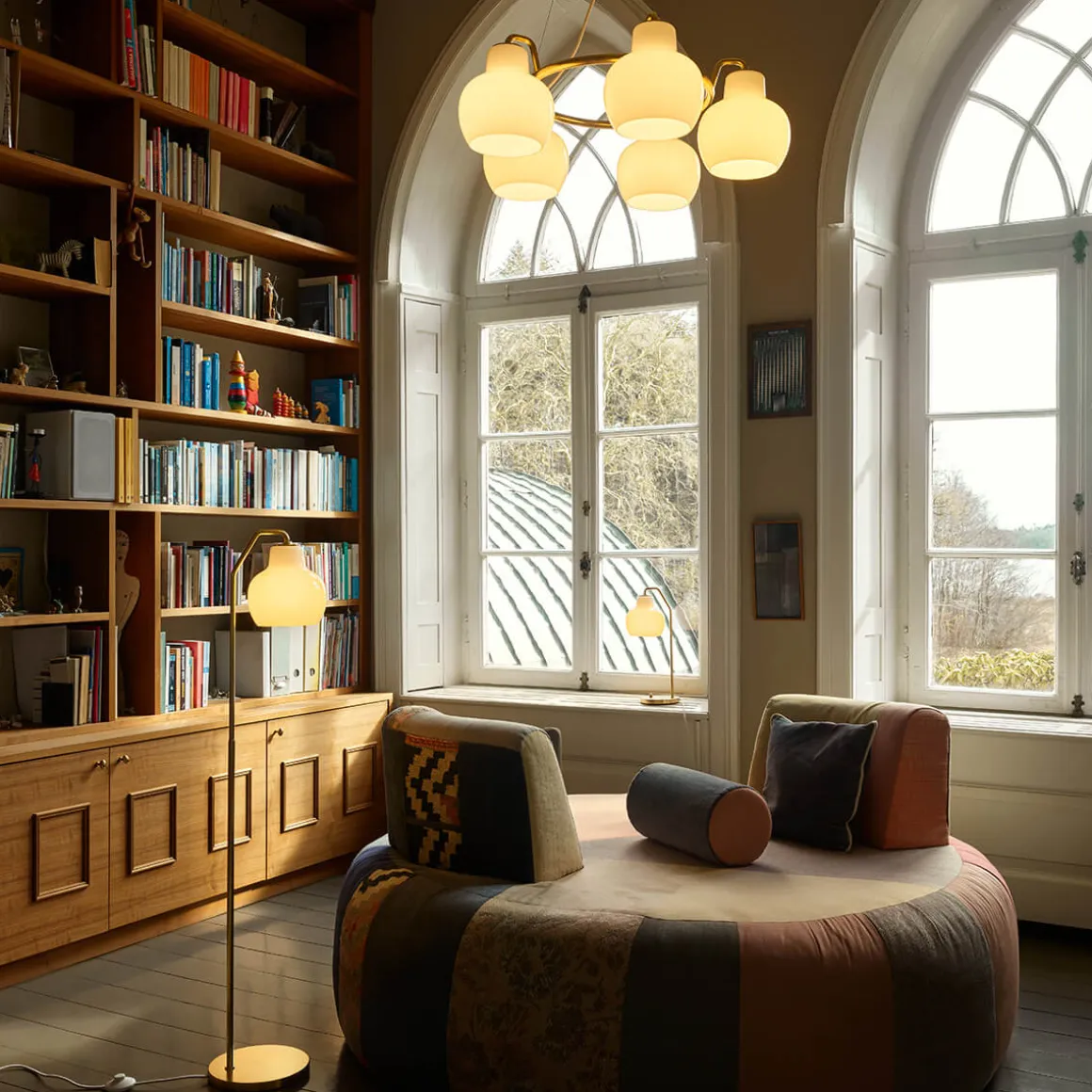 Als Stehlampe eignet sich die VL Ring Crown besonders für Wohnzimmer und Loungebereiche, wo sie neben Sofa oder Sessel als stilvolle Leseleuchte fungiert. Auch im Schlafzimmer oder in repräsentativen Innenräumen setzt sie elegante Akzente. Das ausstrahlende Licht wird durch das opalweiße Glas sanft im Raum verteilt und schafft eine atmosphärische, behagliche Umgebung.