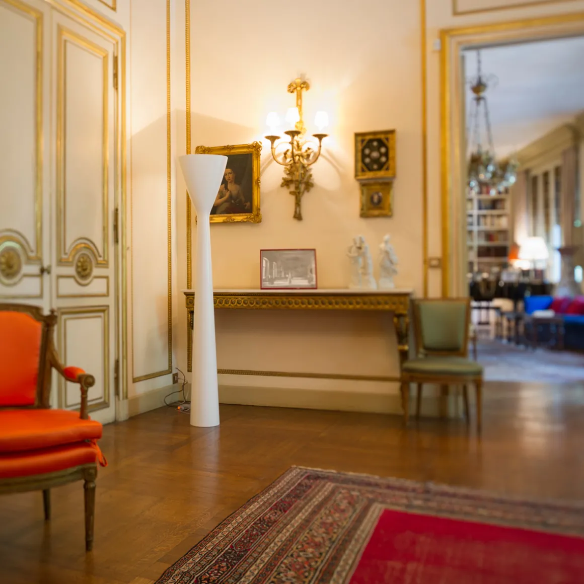 Luceplan Carrara LED Terra: skulpturaler Deckenfluter mit eleganter Linienführung