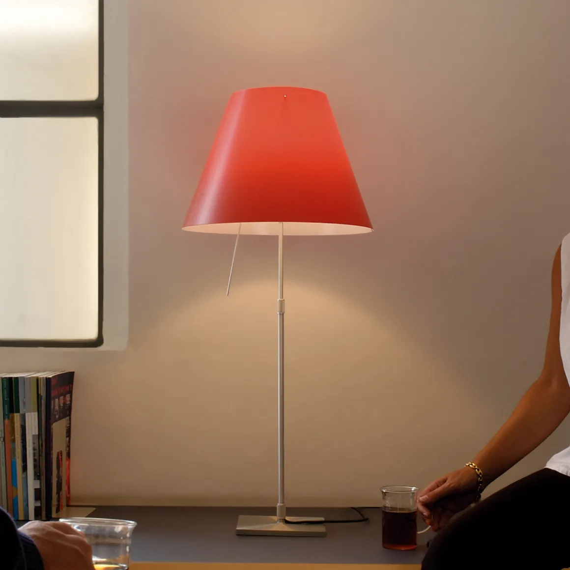 Die unzähligen Farben, in denen die Schirme der Costanza Leuchtenserie erhältlich sind, machen es möglich, die Tischleuchte in ihrer Ausdruckskraft zu variieren und dem Innenraum eine persönliche Note zu verleihen.