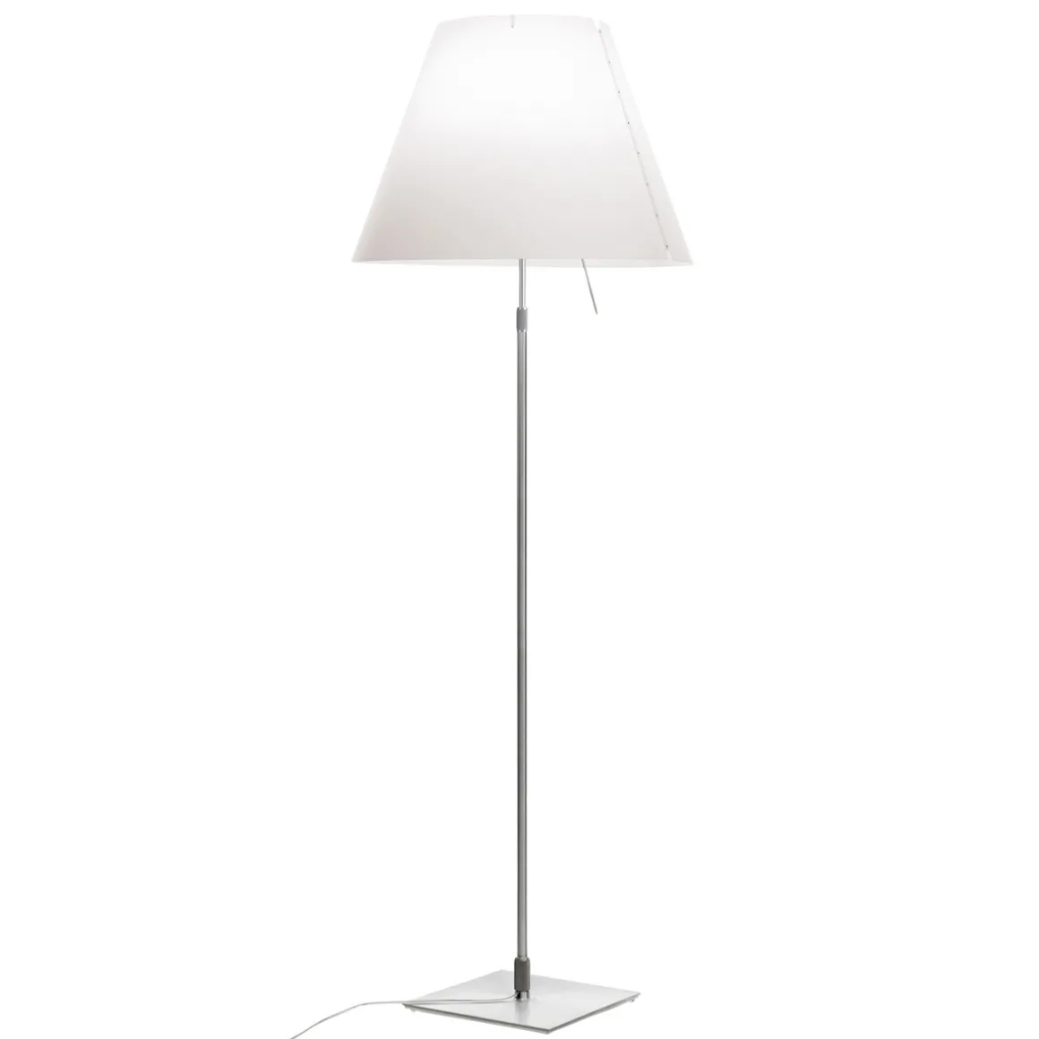 Gefertigt ist der konisch geformte Leuchtenschirm aus weißem Polycarbonat. Der Fuß der besteht aus Aluminium. Zu erwerben ist die Luceplan Grande Costanza Terra mit An- und Ausschalter sowie in einer Version mit Touchdimmer, über den sich die Lichtintensität der Stehlampe variieren lässt.