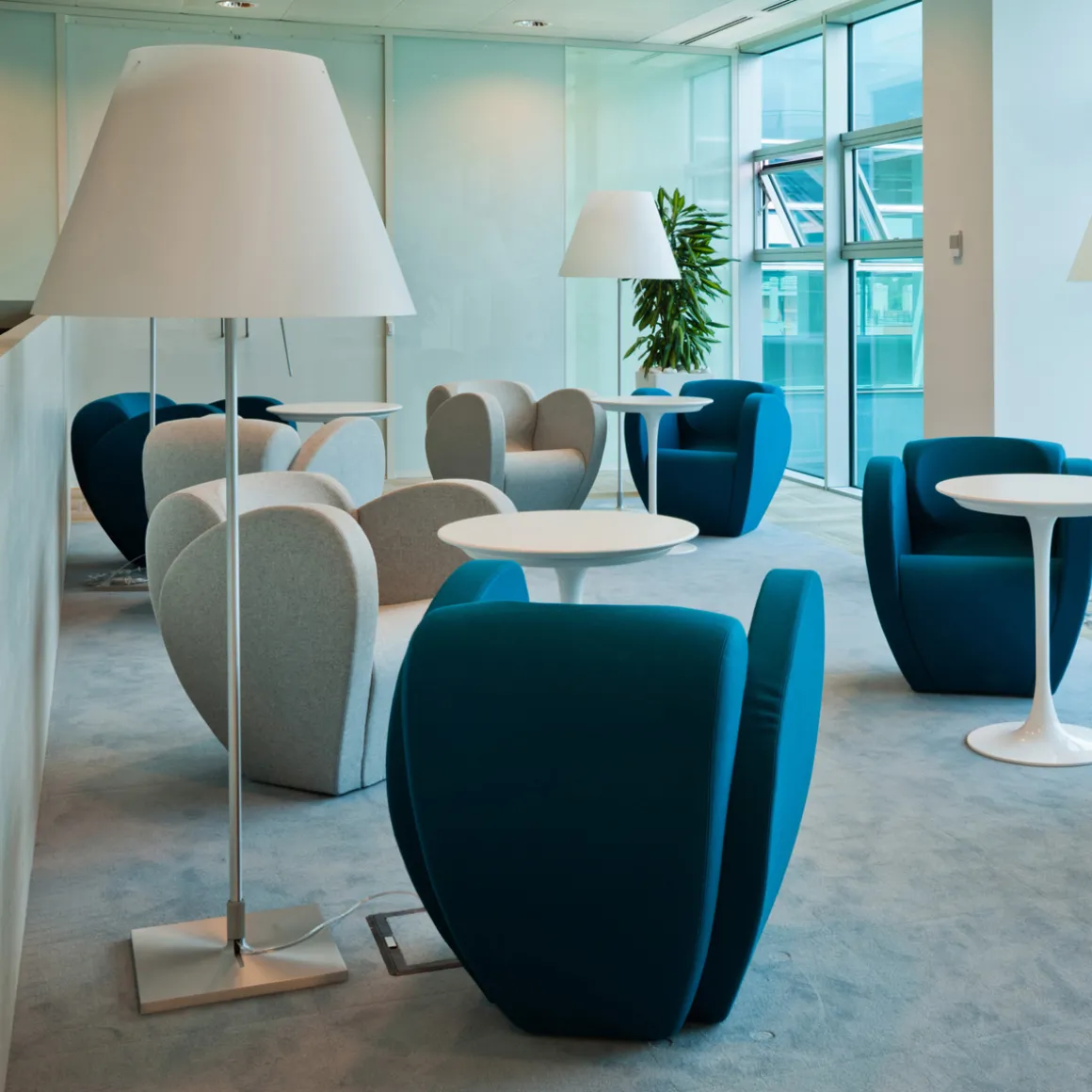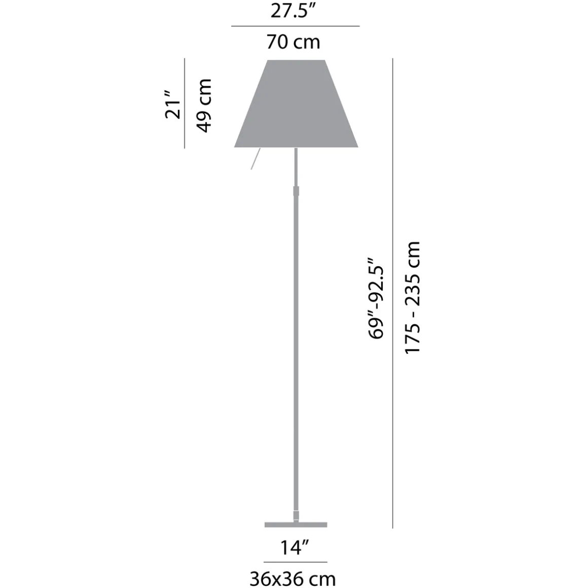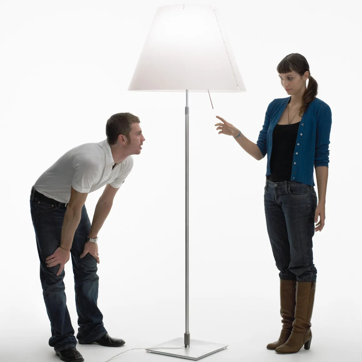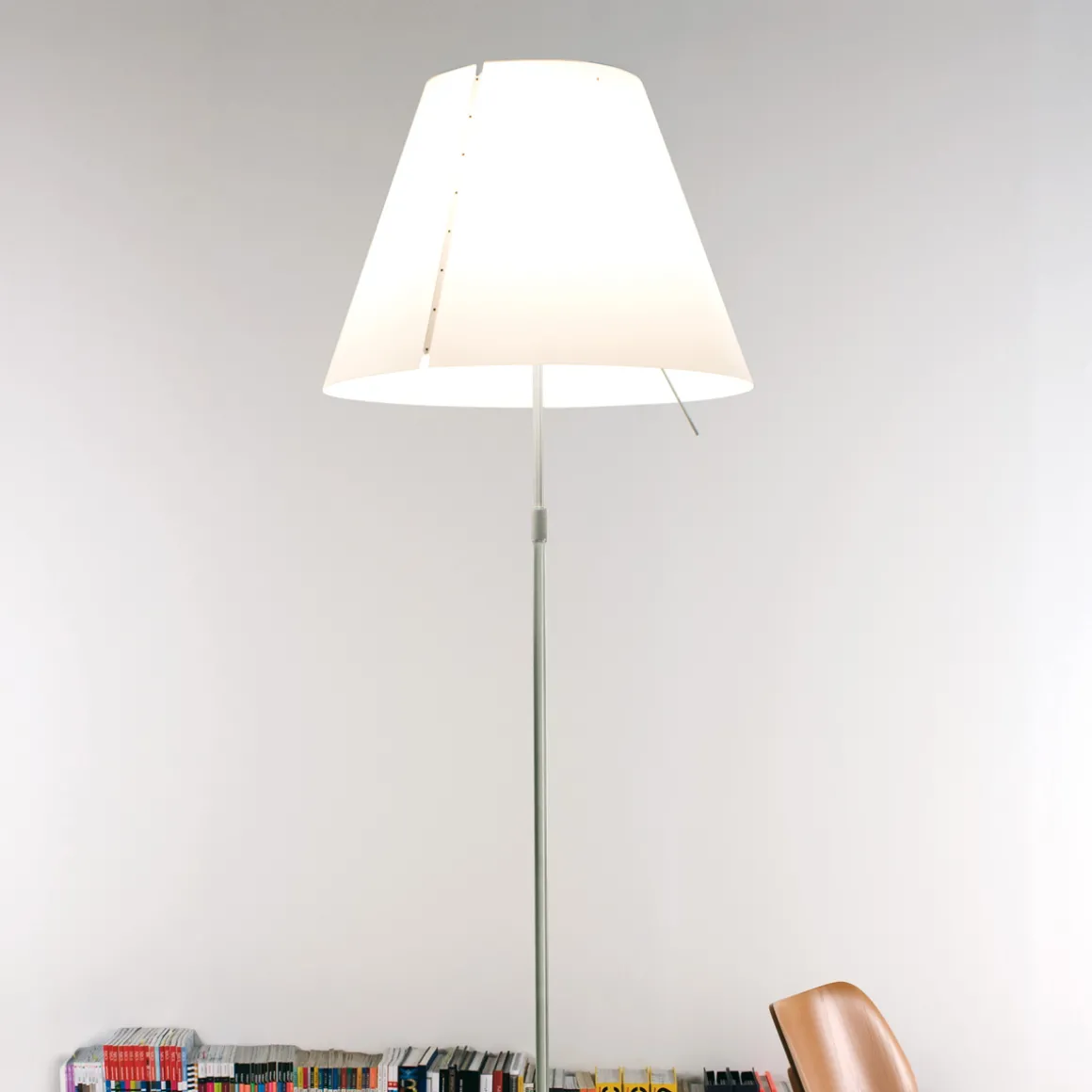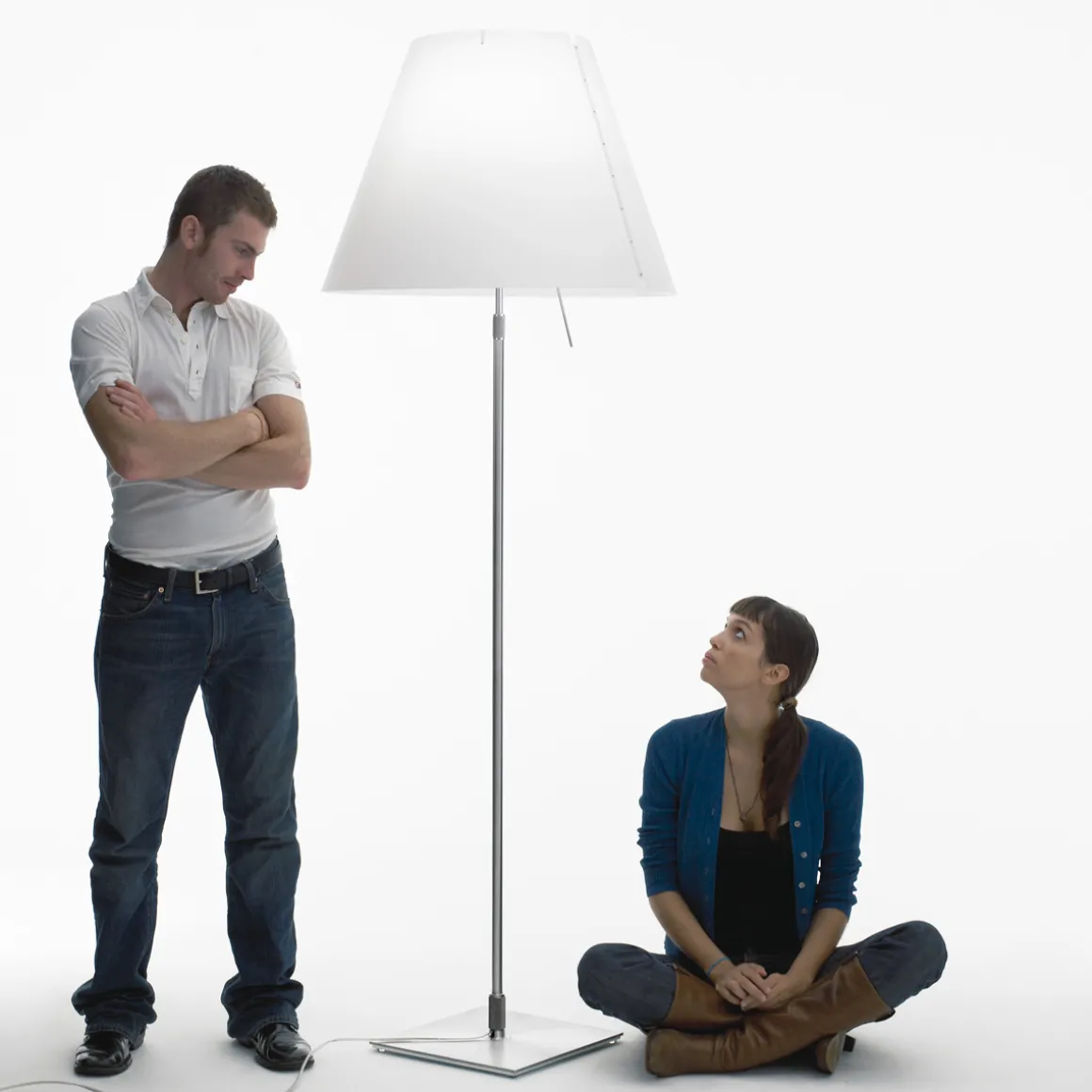 Hierdurch eignet sich Grande Costanza Terra vor allem zur Ausleuchtung größerer Raumbereiche: etwa in Lobbies, stilvollen Wartesälen oder einem großflächigen Wohnzimmer, wie es sich etwa in Altbauten finden lässt. Hier sorgt die Stehleuchte für ein intensives, behagliches und diffus gestreutes Licht. Praktischen Nutzen erhält die Luceplan Grande Costanza Terra aufgrund ihres Teleskopständers, durch den sich der Leuchtenschirm in seiner Höhe regulieren lässt.