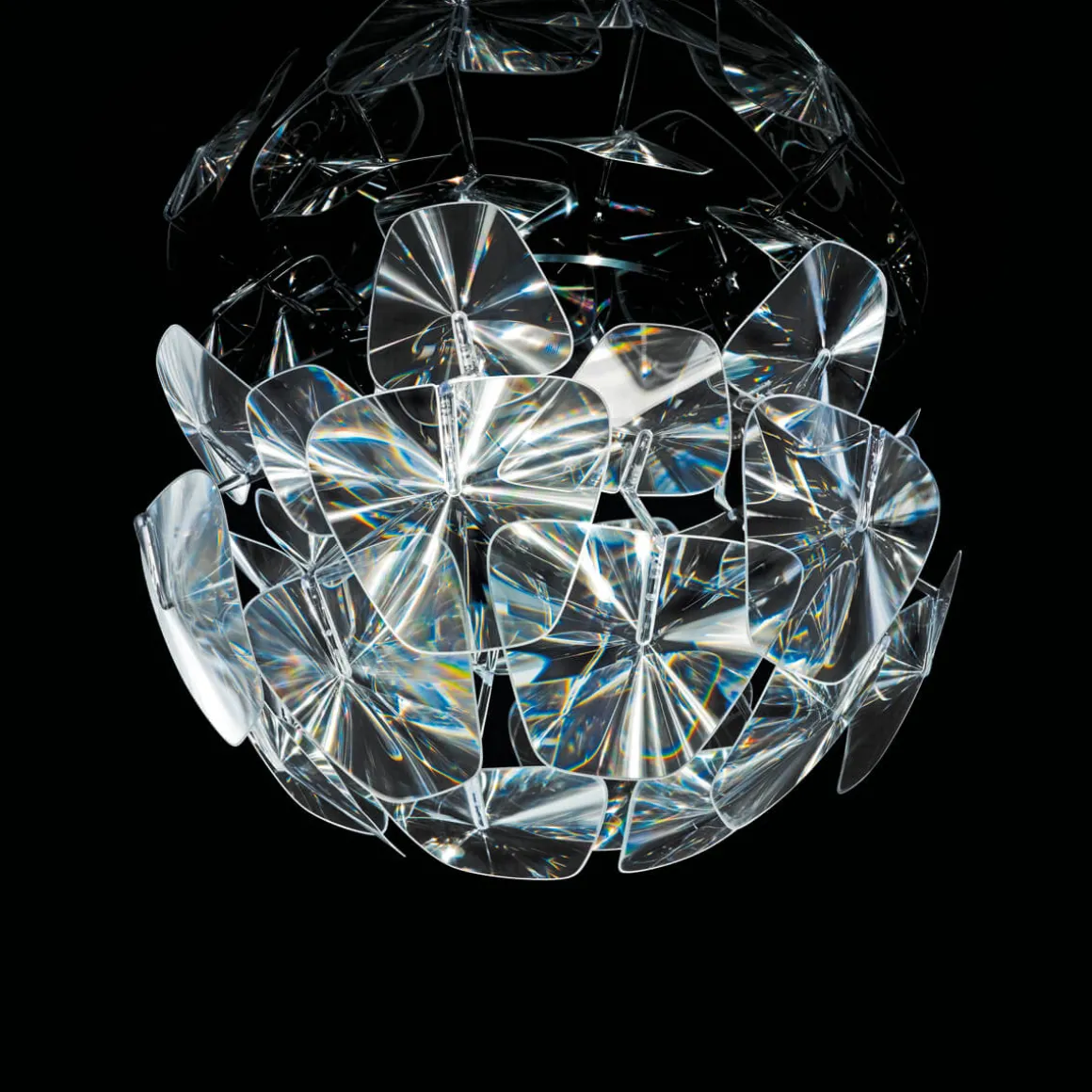 Im Zentrum des Designs steht der kunstvoll gestaltete Leuchtenschirm. Dieser besteht aus einer Vielzahl extrem dünner Fresnel-Linsen, welche die wie die schützenden Blätter einer Knospe umgeben. Sie erzielen sie einen glasähnlichen dioptrischen Effekt, sind jedoch leichter und dünner als Glas, und reflektieren das Licht auf vielfache Weise.