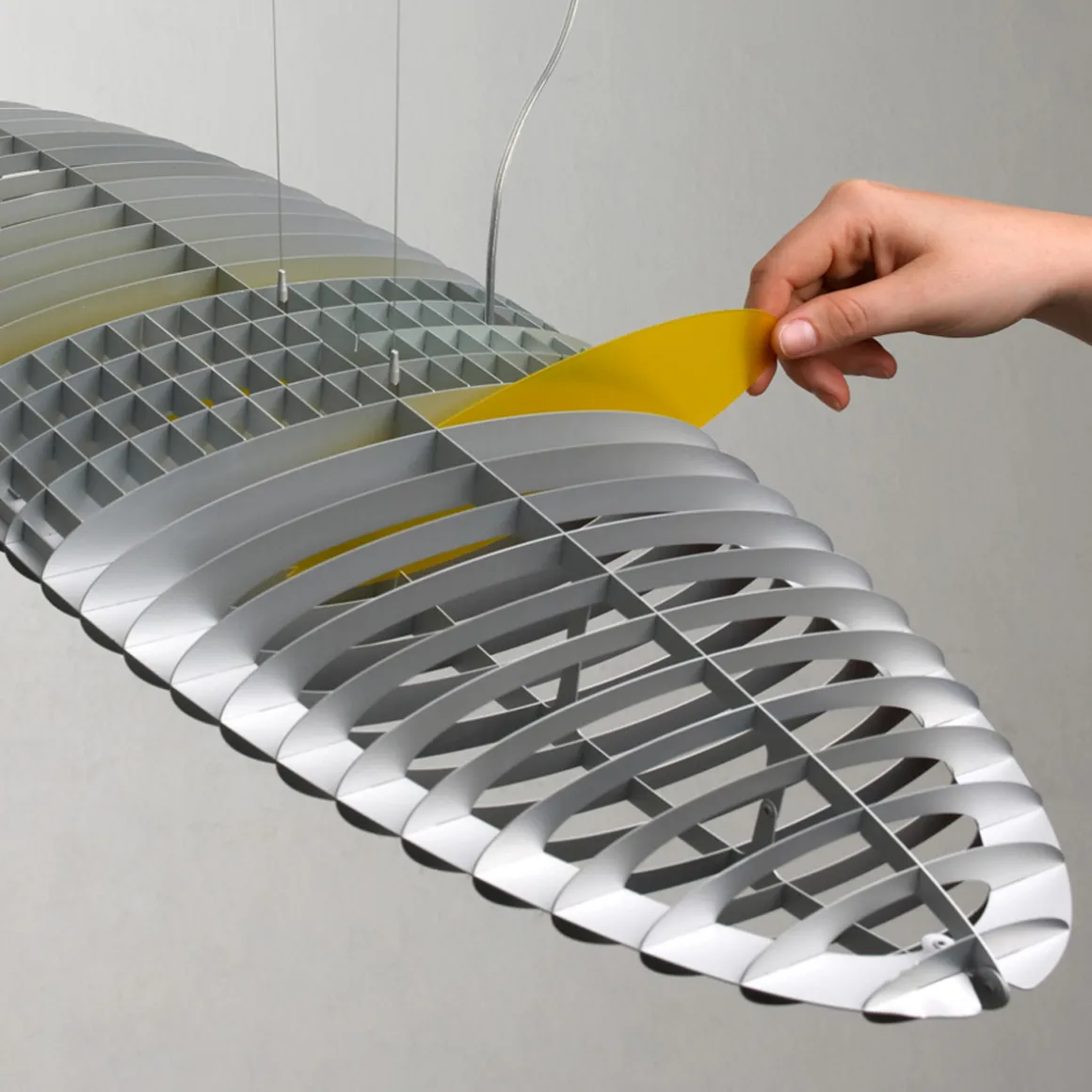 Fünf Farbfilterpaare aus Polycarbonat in den Farben Gelb, Grün, Blau, Violett und Rot können dem rippenförmigen Korpus eingefügt werden, wodurch die – ohne das weiße Licht zu beeinflussen – in einer stets andersartigen Tönung erstrahlt.
