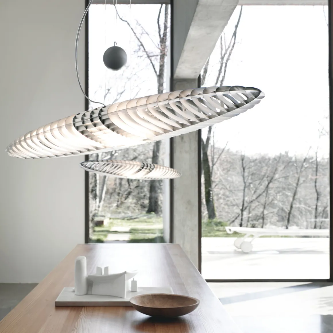 - Ausgefallene Zugpendelleuchte mit Aluminiumlamellen