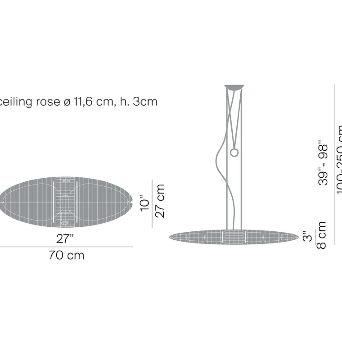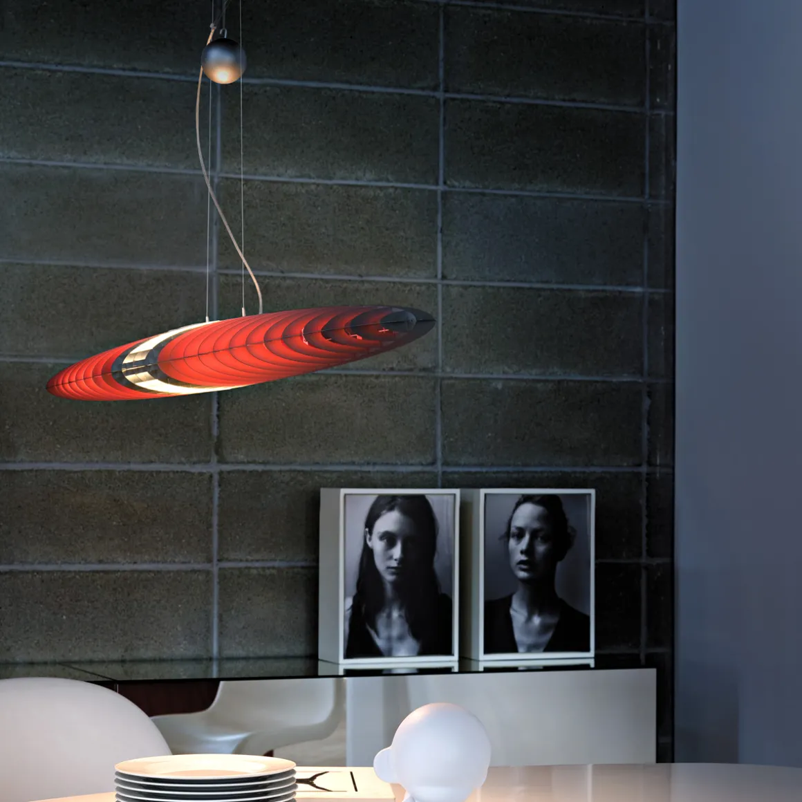 Bekennen Sie Farbe – mit der Titania Pendelleuchte von Luceplan! Leicht und wandlungsfähig, wie sie ist, überzeugt sie nicht nur durch ihre originelle Formensprache. Eine Vielzahl an Aluminiumlamellen bildet die elliptisch geformte Hängeleuchte, die in ihrem Zentrum das birgt und ein helles und blendfreies Licht erzeugt. Je nach Position des Leuchtenschirms ergeben die Lamellen eine unterschiedliche visuelle Wirkung: Nahezu transparent erscheint die Titania Sospensione von der Front aus gesehen, als solider Körper hingegen, wird sie von der Seite aus betrachtet.