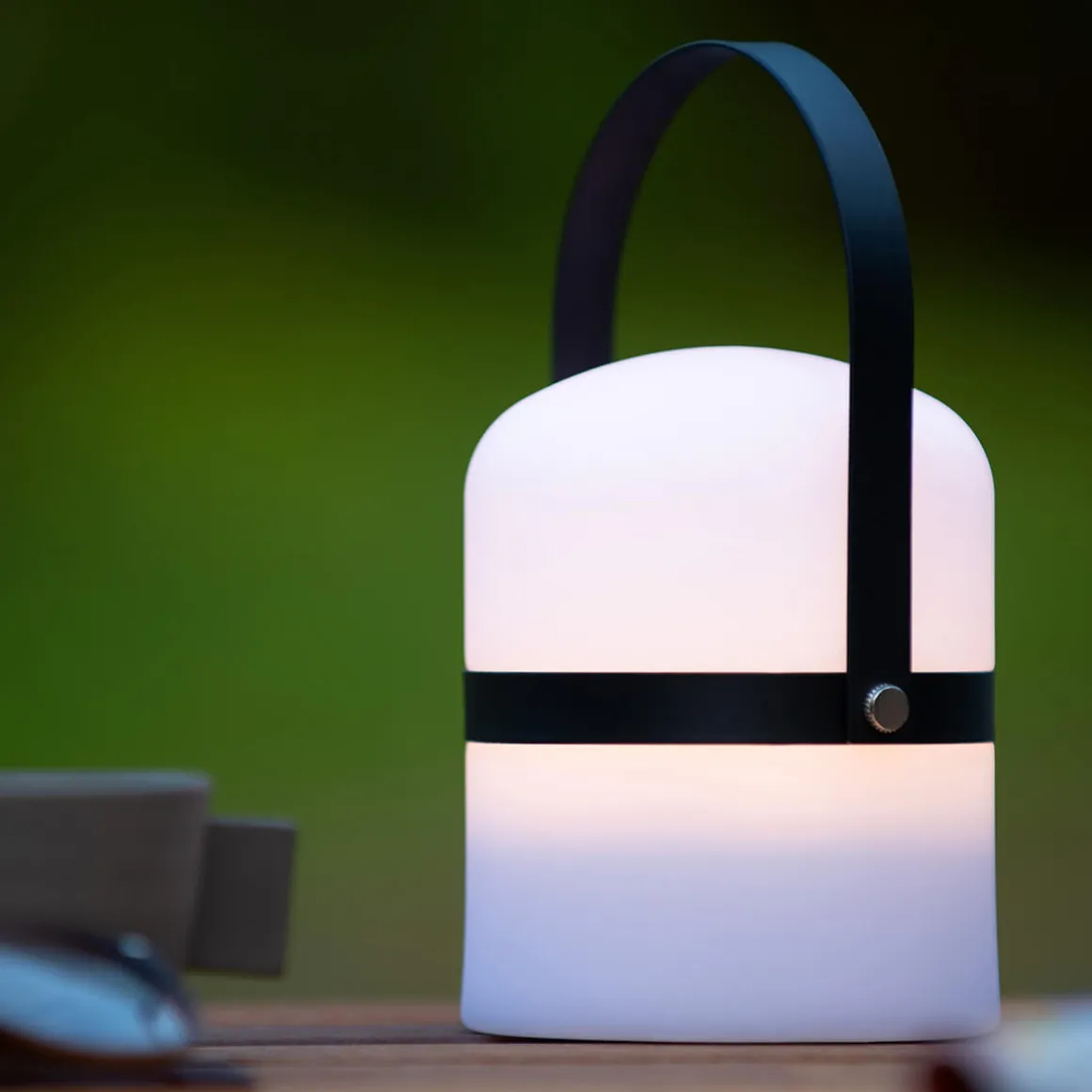 - Kabellose, tragbare Tischlampe mit farbigem Kunststoffhenkel