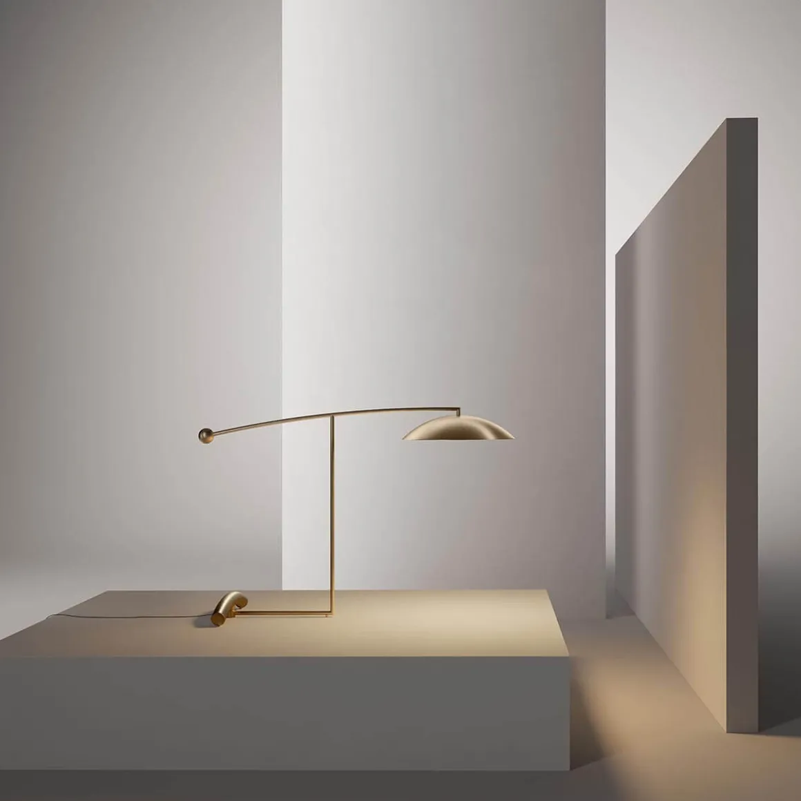 Gefertigt aus Messing, überzeugt die Designerleuchte durch eine horizontale Struktur, die sich um 360° um den vertikalen Fuß drehen lässt. So können Sie das Licht jederzeit bedarfsgerecht ausrichten. Dies macht die zur perfekten Wahl als Leselampe im Arbeiszimmer, Akzentbeleuchtung auf dem Beistelltisch neben einem Sessel oder stimmungsvolles Lichtobjekt in Hotelzimmern und Lounges.