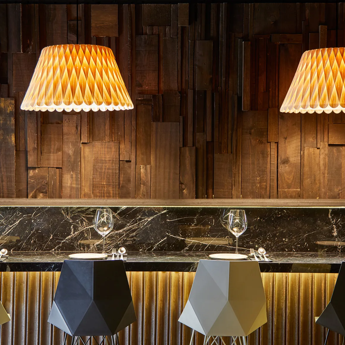 In Handarbeit hergestellt aus FSC-zertifiziertem Echtholzfurnier und mittels patentiertem Timberlite®-Finish veredelt, ist Lola nicht nur widerstandsfähig, sondern auch ein Zeugnis nachhaltiger Produktionsmethoden. Mit ihrem nach unten gerichteten Licht und einer von CRI 90 eignet sich die Pendellampe perfekt für den Einsatz über Esstischen und Theken, wo sie durch ihre gewebte, geometrische Struktur zauberhafte Lichteffekte kreiert.