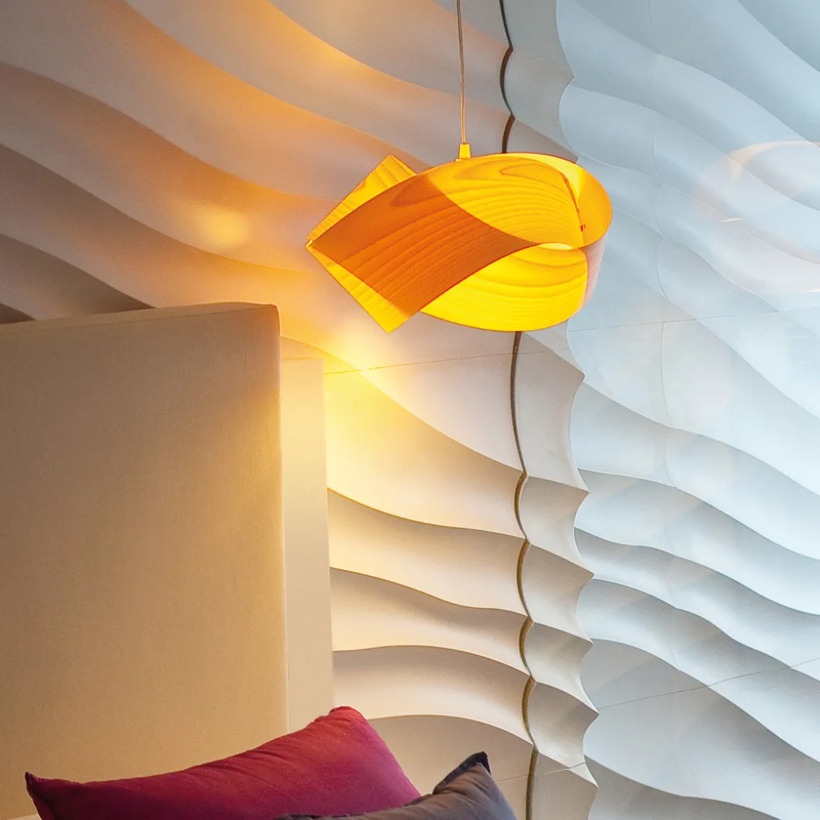 Jede wird sorgfältig von Hand aus FSC-zertifiziertem Echtholzfurnier gefertigt. Das Material besticht durch seine Zartheit und ist dank des patentierten Timberlite®-Finishs besonders widerstandsfähig. Verfügbar ist die Nut Pendelleuchte in einer Reihe von dekorativen Farben, in klassischen Tönen wie Kirschenholz, Buche und Elfenbeinweiß sowie lebendigen Farbvarianten wie Rot und Blau.