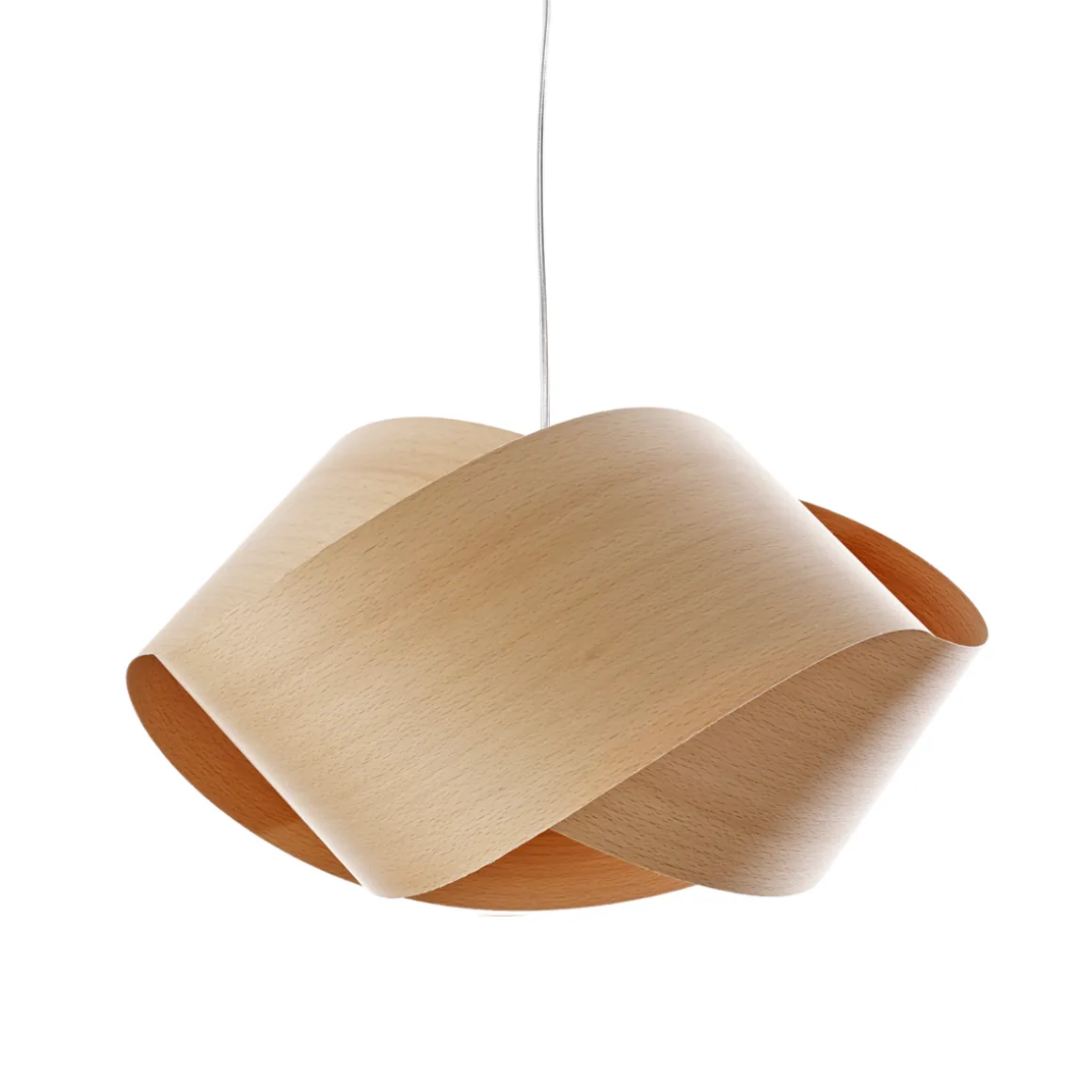 Die Nut Pendelleuchte von LZF Lamps, entworfen vom renommierten Designer Ray Power, ist ein Meisterwerk des Designs und der Handwerkskunst. Inspiriert von der Form des Altweiberknotens (Granny Knot), präsentiert sich der Leuchtenschirm in einer einzigartigen Form: Er besteht aus zwei kunstvoll ineinander verdrehten Bändern aus Holzfurnier, deren unterschiedliche Drehrichtungen eine dynamische und abwechslungsreiche Silhouette erzeugen.