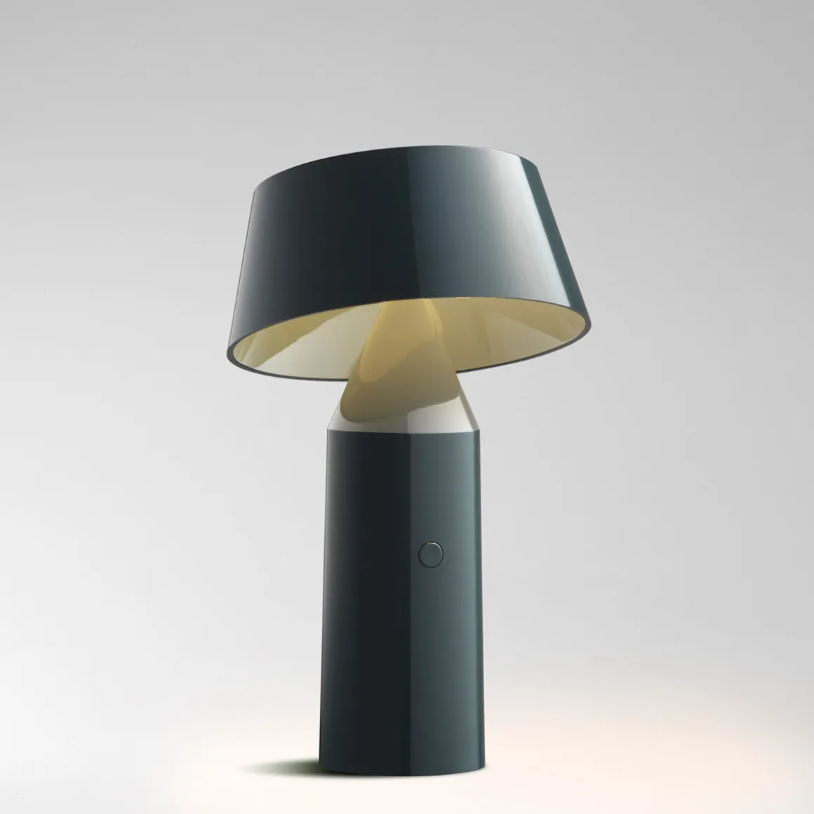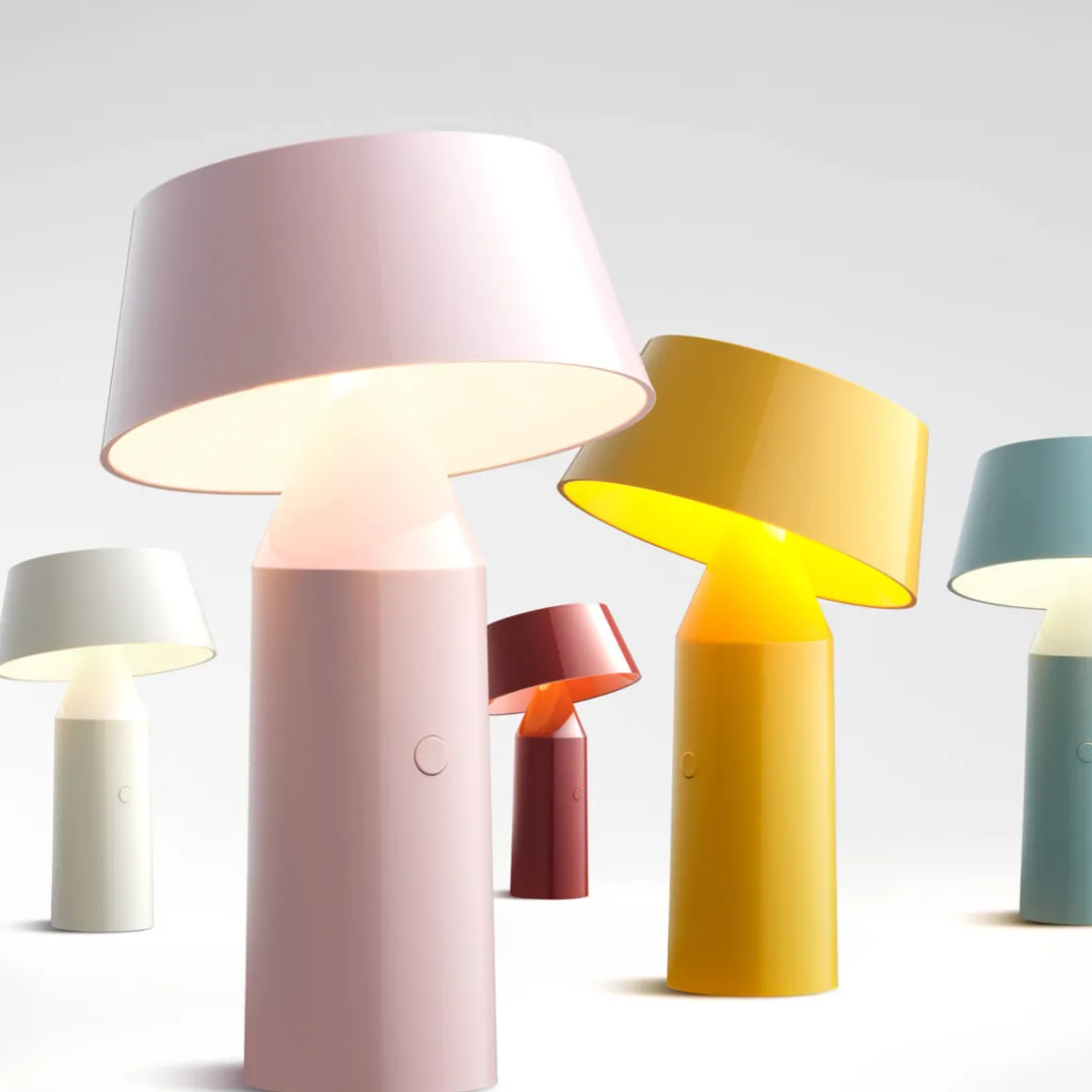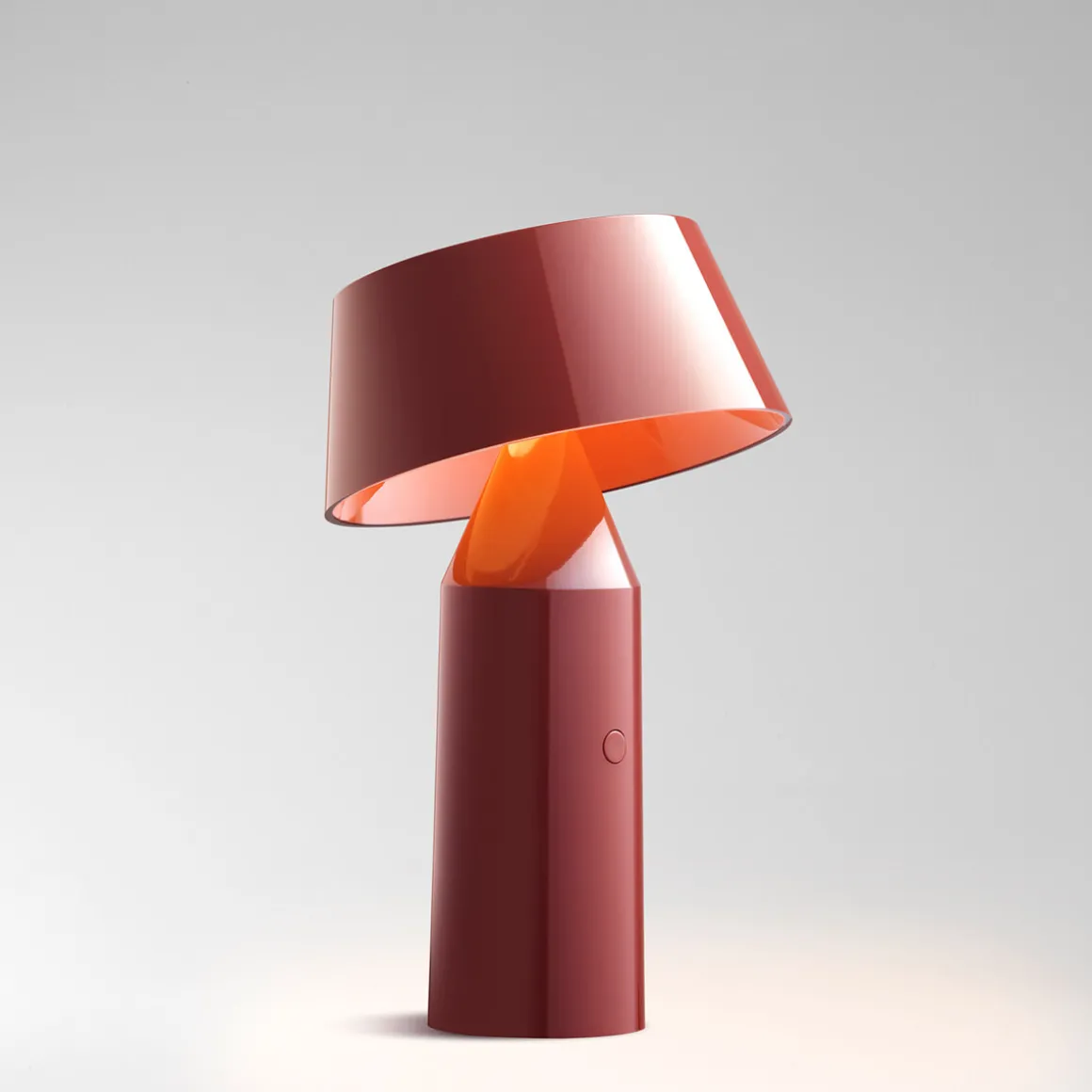 Die moderne Linie der Marset Bicoca LED resultiert aus der formalen Überlagerung geometrischer Grundformen. Der zylinderförmige Fuß besteht ebenso wie der konisch zulaufende Schirm aus farbigem Kunststoff. Dies macht die Leuchten zu wahren Leichtgewichten – perfekt also, um sie überallhin mitzunehmen.