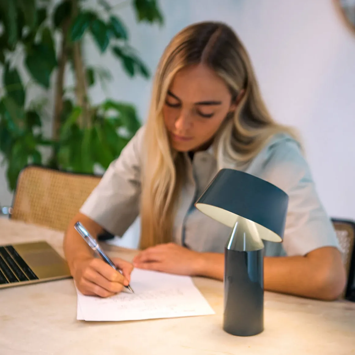 Mit ihrem warmen Licht – die integrierte LED besitzt eine Lichtfarbe von 2.700 Kelvin – erhellt die Bicoca LED den persönlichen Raum auf gemütliche Weise. Ein 3-Stufen-Dimmer macht es möglich, die Lichtintensität der LED- schrittweise zu regulieren. Geht die Energie zur Neige, kann die Akkuleuchte über ein mitgeliefertes USB-C-Ladekabel bequem wieder aufgeladen werden (Ladezeit: ca. 10 Stunden).