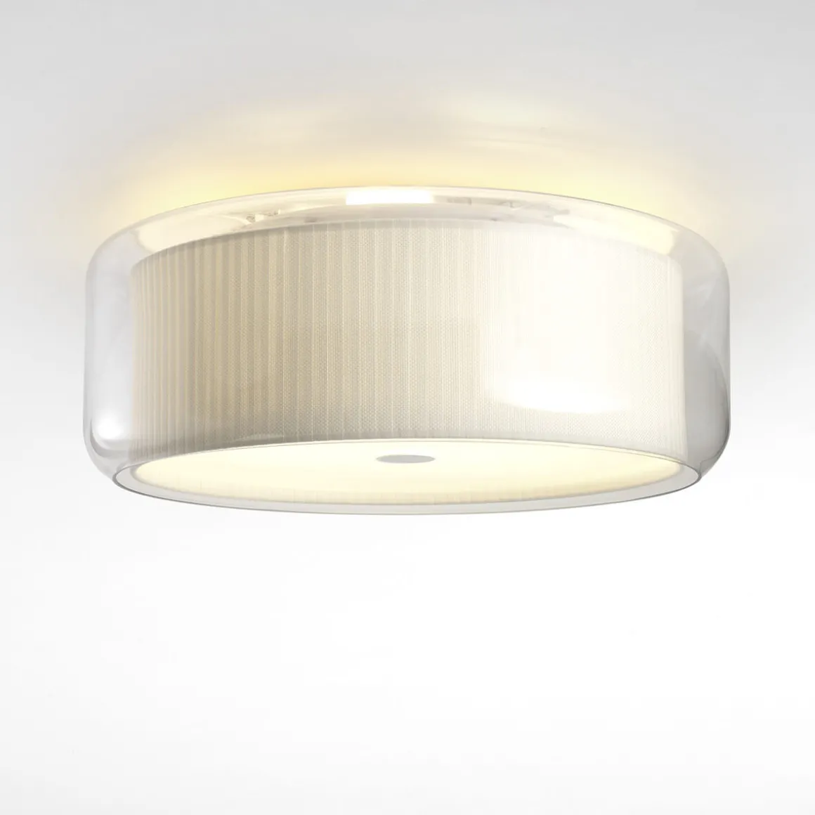 | Material/Oberfläche: | Textilschirm, Außenschirm: geblasenes Glas transparent, Diffusorscheibe: opal |
