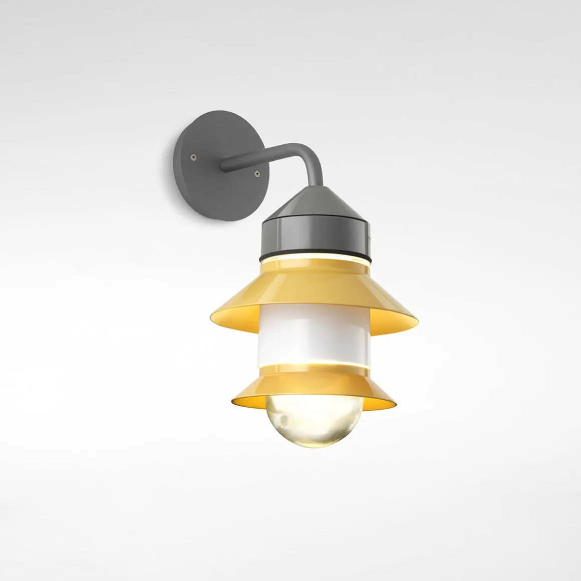 | Material/Oberfläche: | Polycarbonat grau, Diffusor: mundgeblasenes Glas, Haltestruktur: Metall grau lackiert |