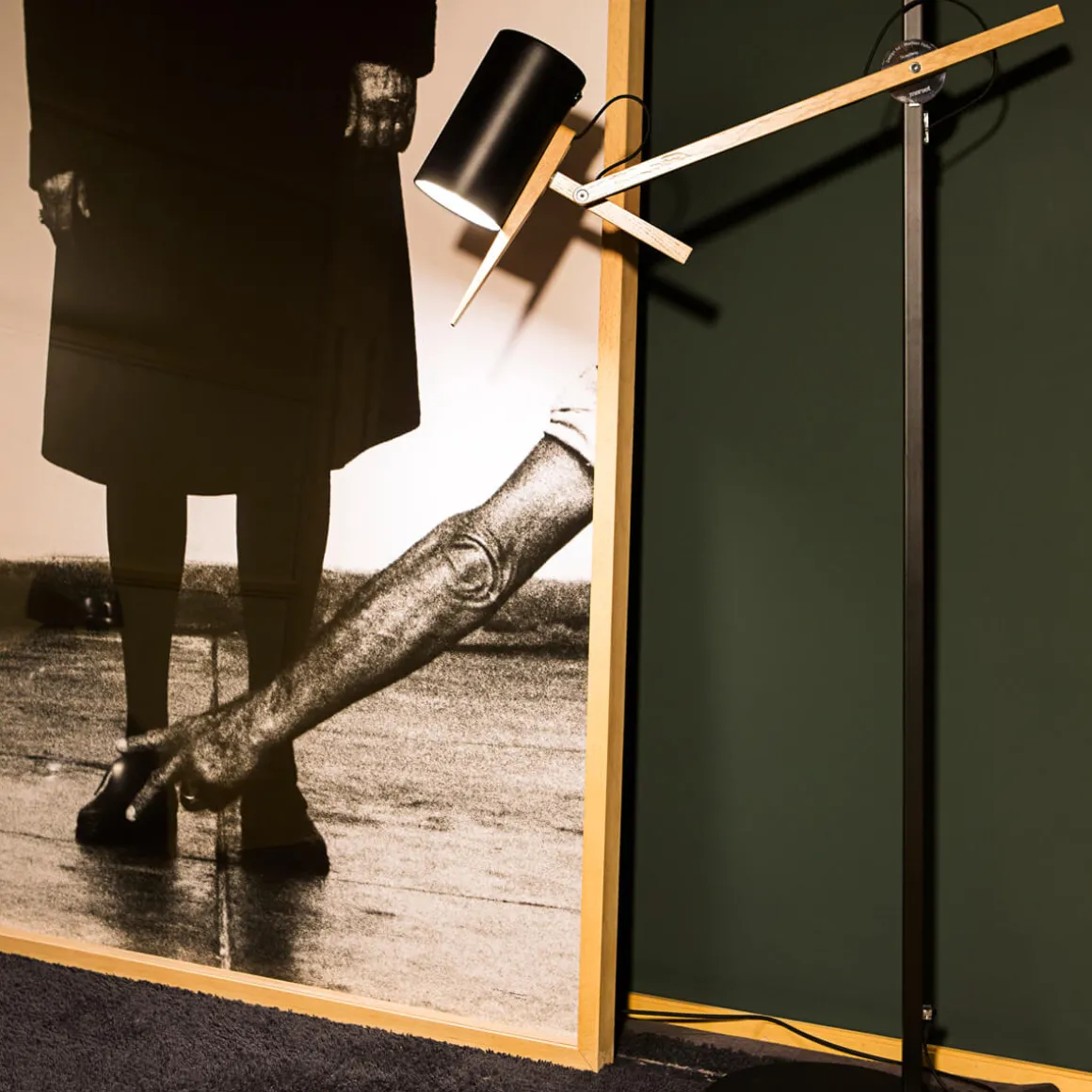- Funktionale Stehlampe mit beweglichem Arm aus Eichenholz