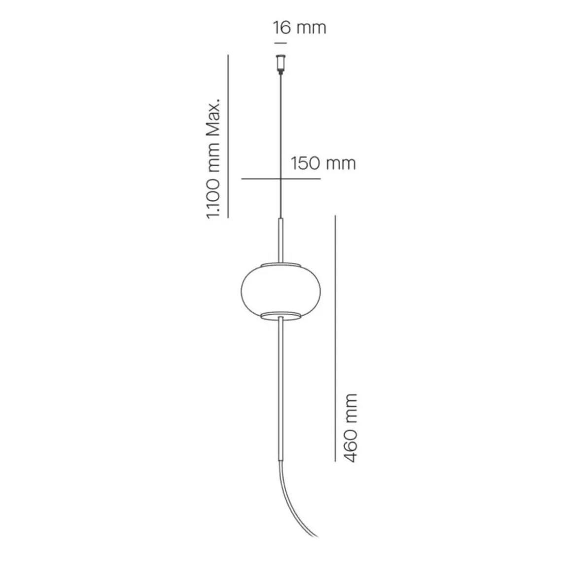 Dank der 2 Meter langen Zuleitung mit Wandstecker lässt sich Astros flexibel im Raum platzieren. Der Leuchtenschirm aus mundgeblasenem Triplex-Opalglas wird über ein filigranes Stahlseil, dessen Länge bei der Montage wunschgerecht eingestellt werden kann, an der Decke fixiert. Getragen wird der satinierte Glaskörper von Halterungen aus mattschwarz lackiertem Zamak (RAL 9005).