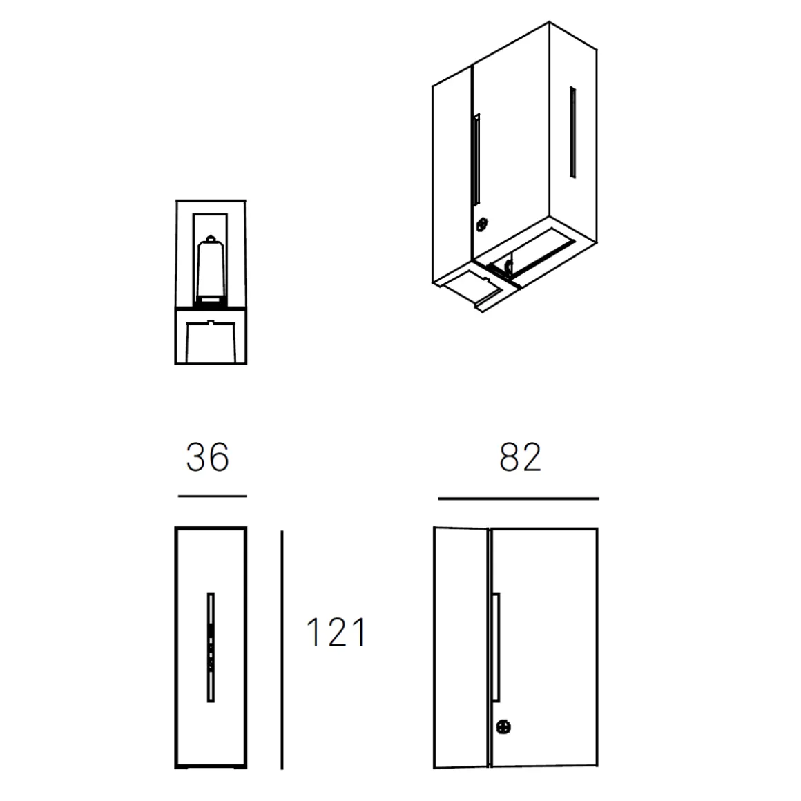 - Quaderförmige Wandlampe in metallischgrauer Lackierung