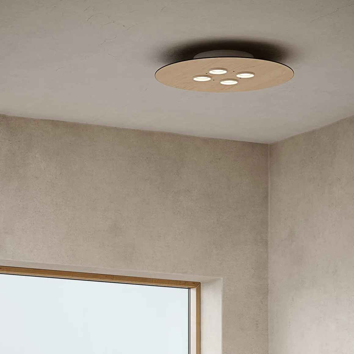 - Runde Deckenleuchte aus Eschenholz mit vier Strahlern