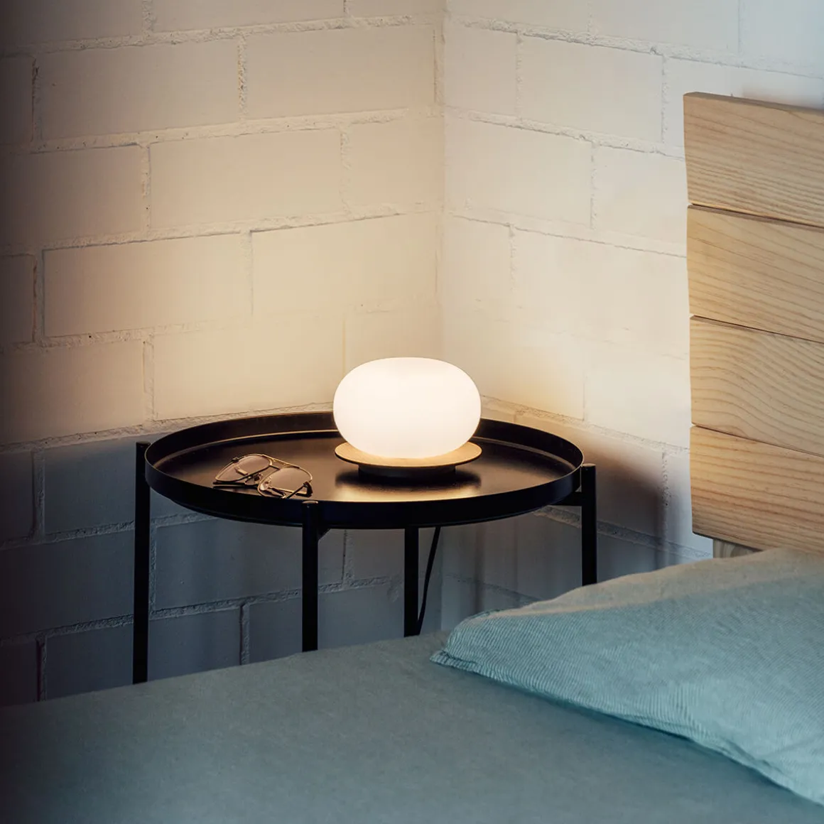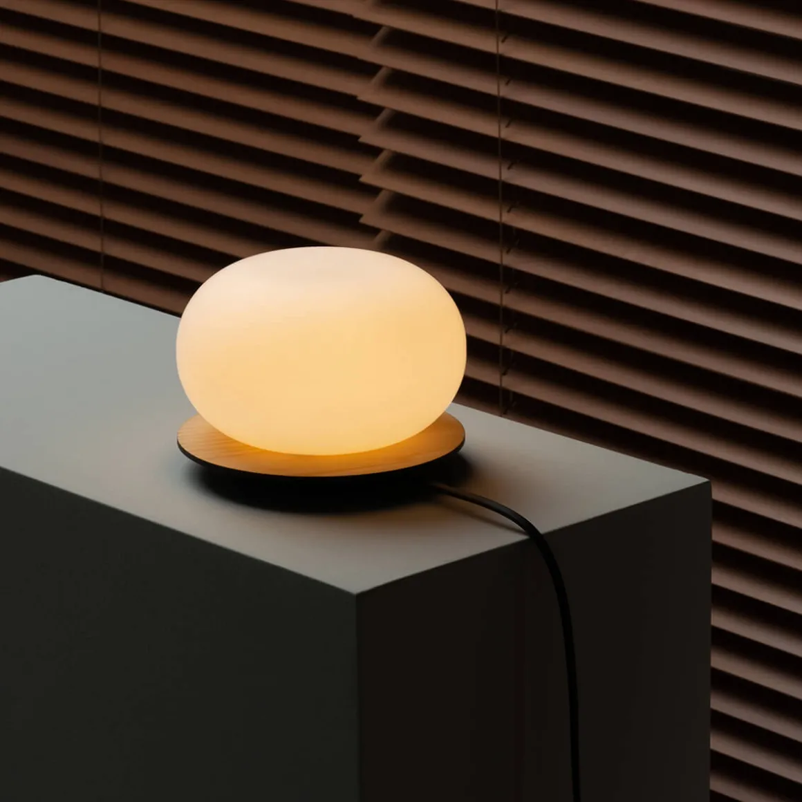 - Moderne Tischleuchte aus lackiertem Eschenholz und Opalglasdiffusor