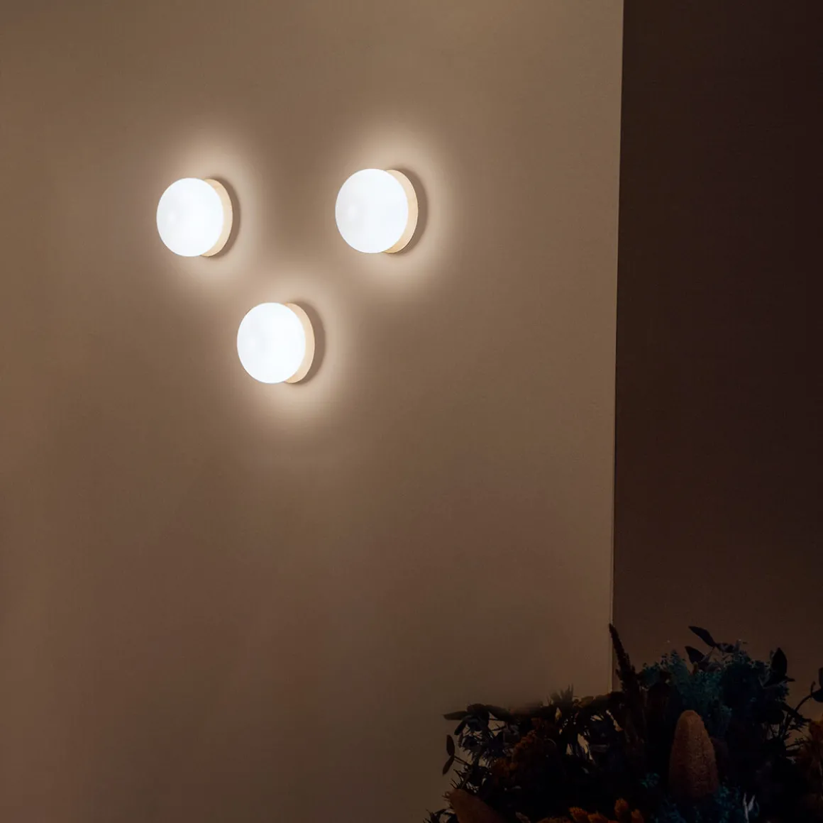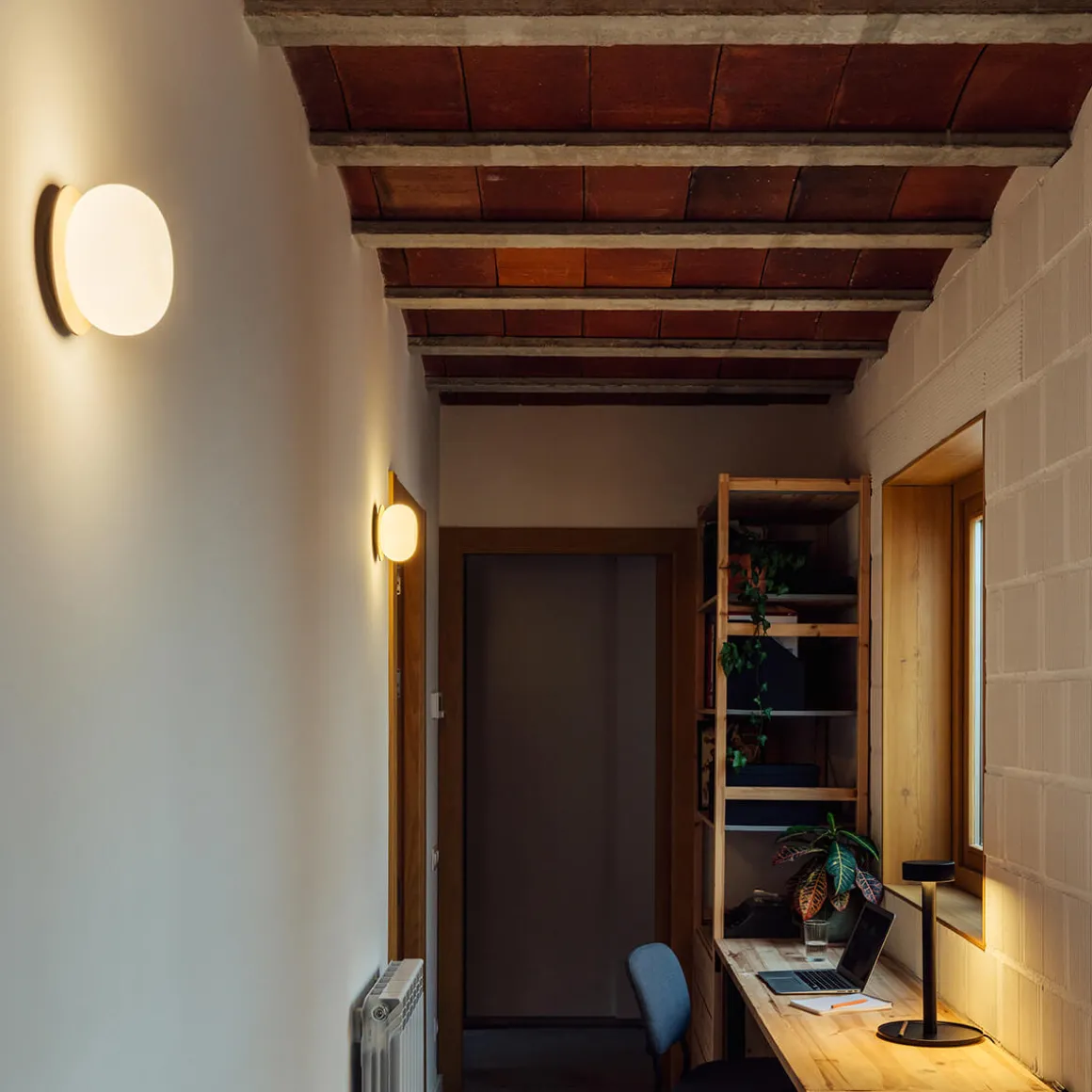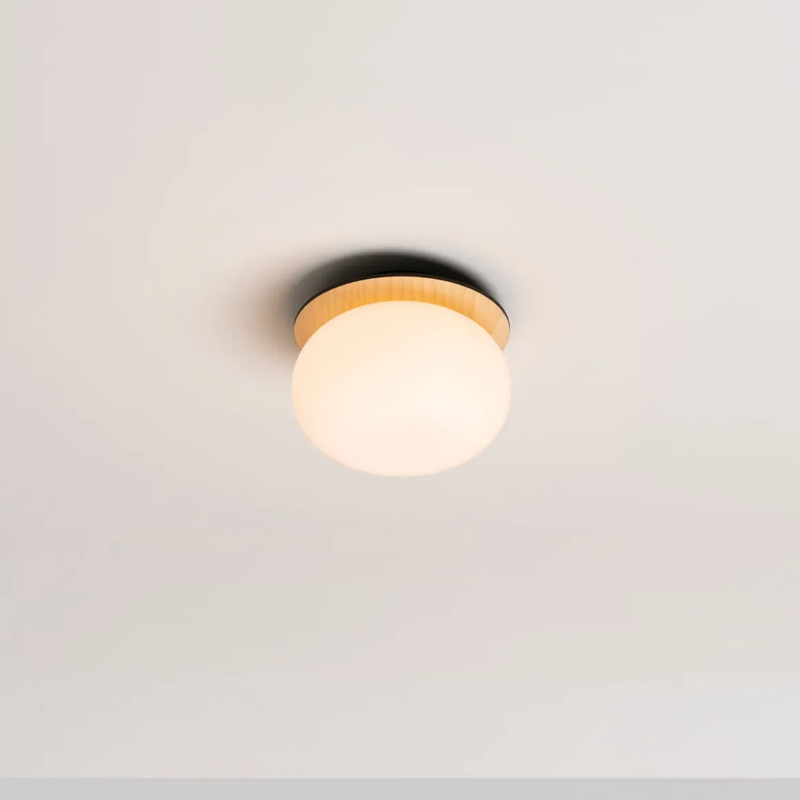 - Kleine Wand- / Deckenleuchte aus lackiertem Eschenholz und Opalglasdiffusor