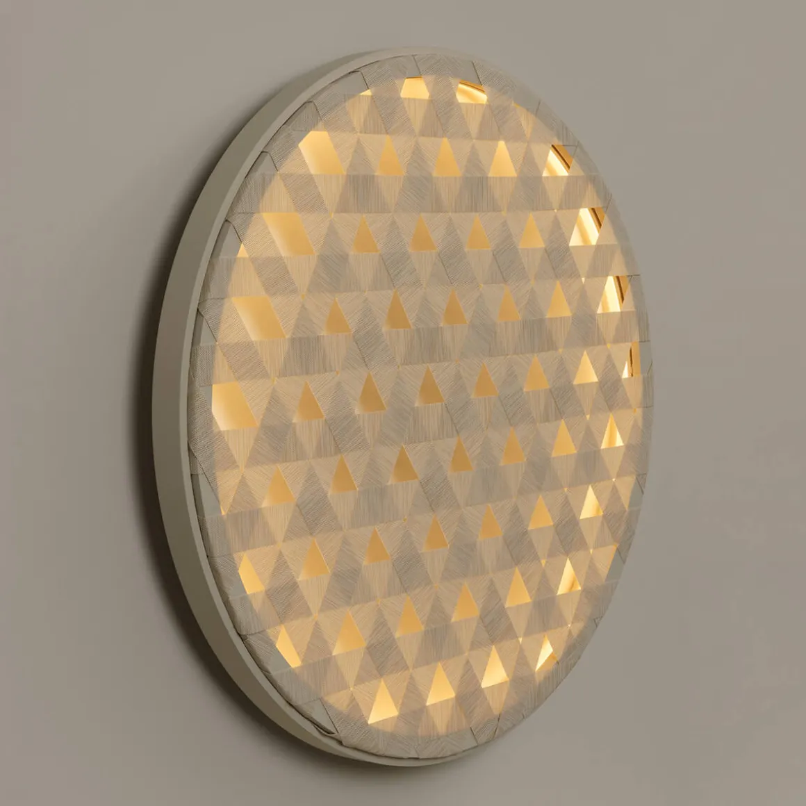 Dekorative Wandleuchte in drei verschiedenen Größen, handgefertigt und aus UV beständigem Material. Die Loom LED Wandlampe lässt sanftes Licht durchscheinen und sorgt für ein behagliches Gefühl in Wohn- und Schlafräumen.