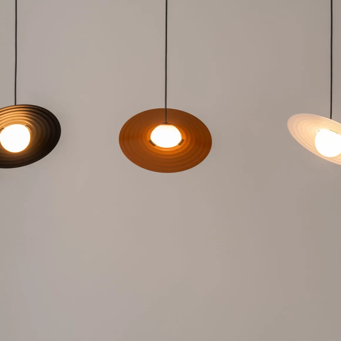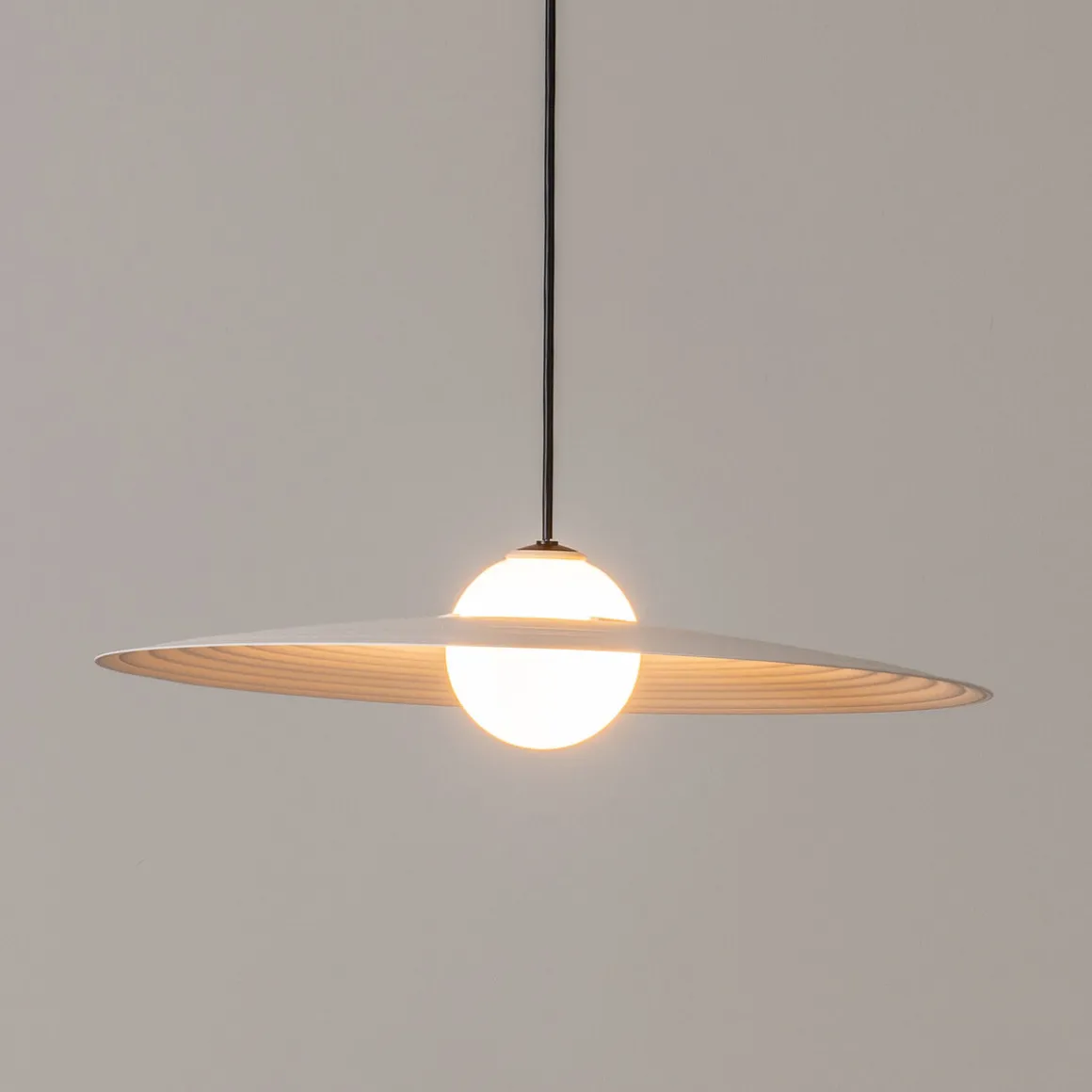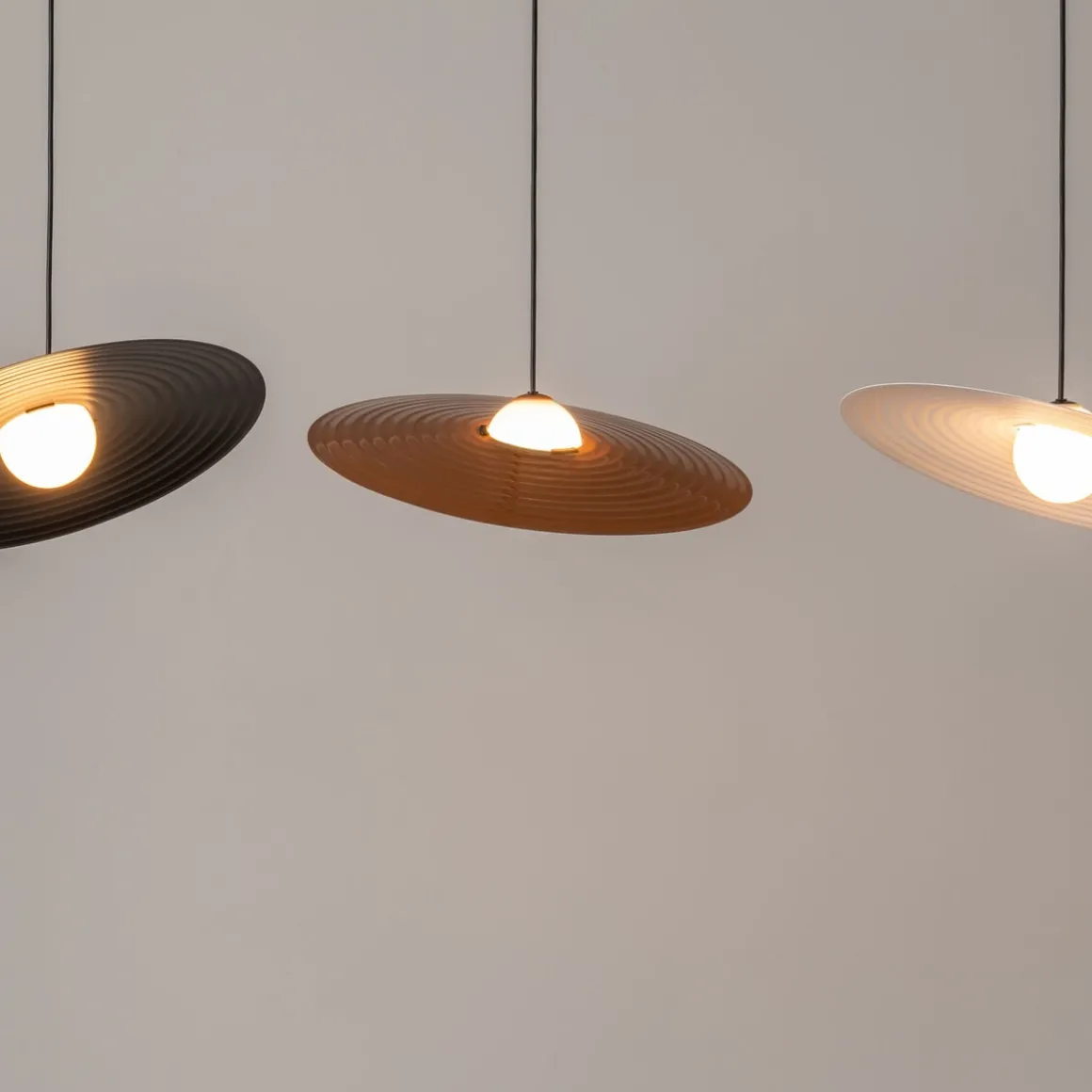 Die Symphony Pendelleuchte von Milan sieht aus wie eine Perkussion und ist mit zwei verschiedenen Schirm-Größen und in drei Farben erhältlich.