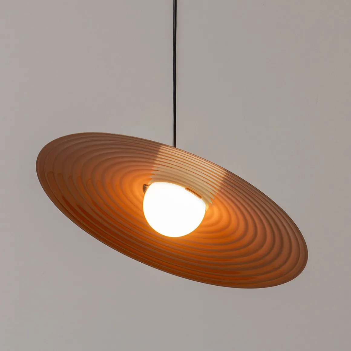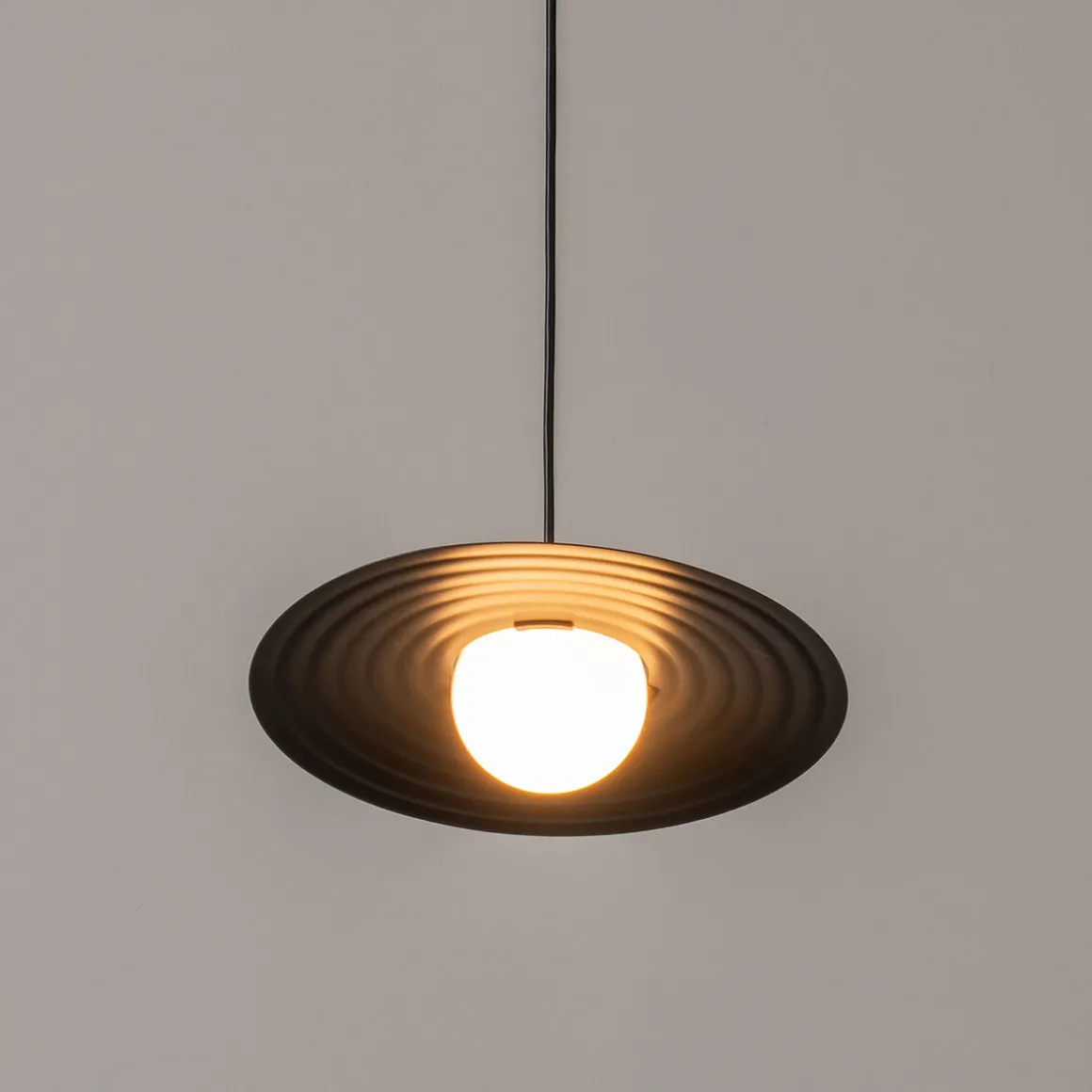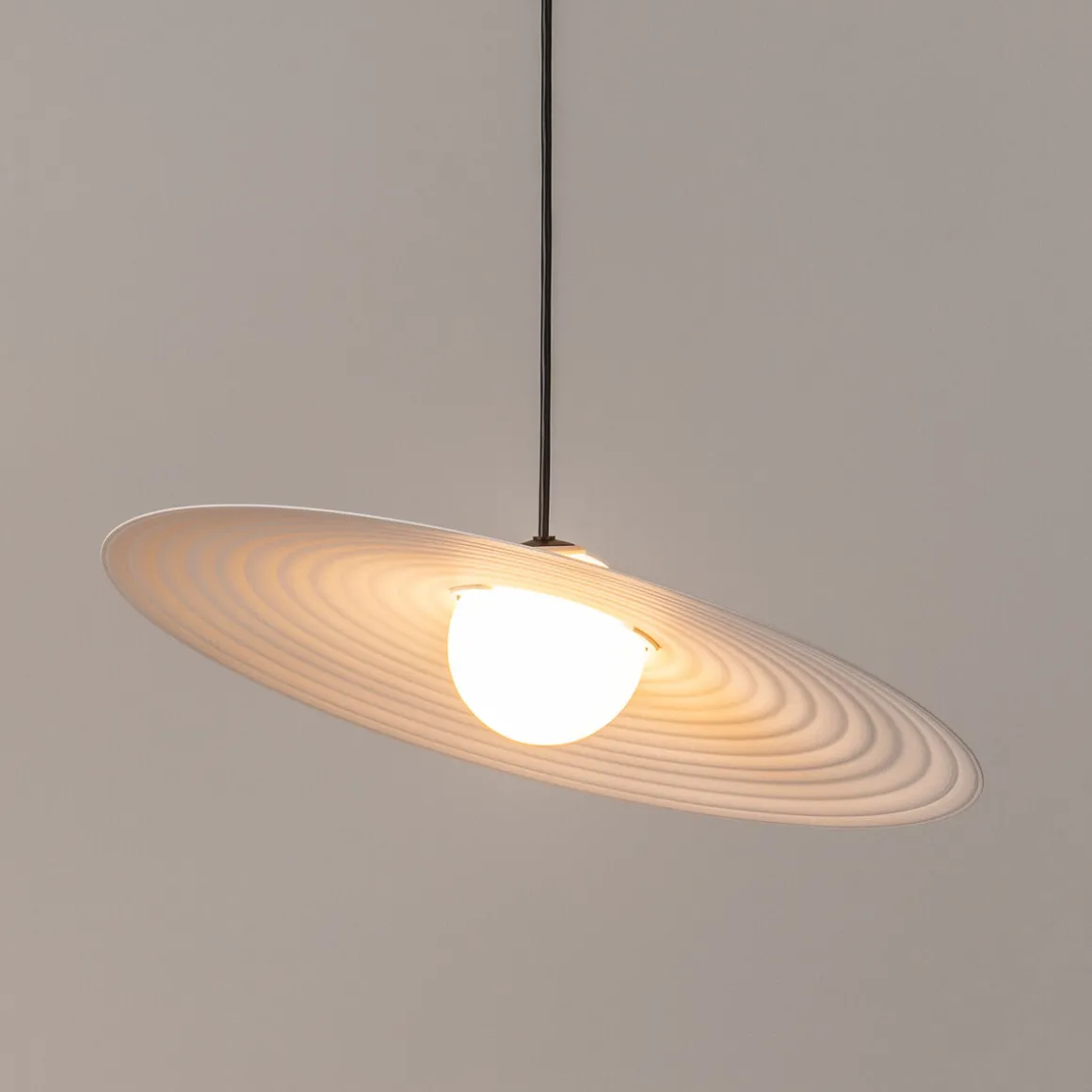 Die Symphony Pendelleuchte von Milan sieht aus wie eine Perkussion und ist mit zwei verschiedenen Schirm-Größen und in drei Farben erhältlich.
