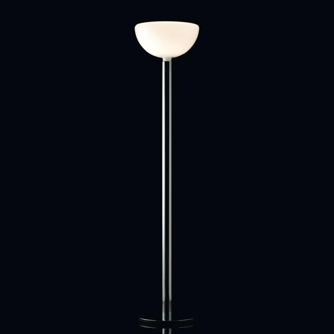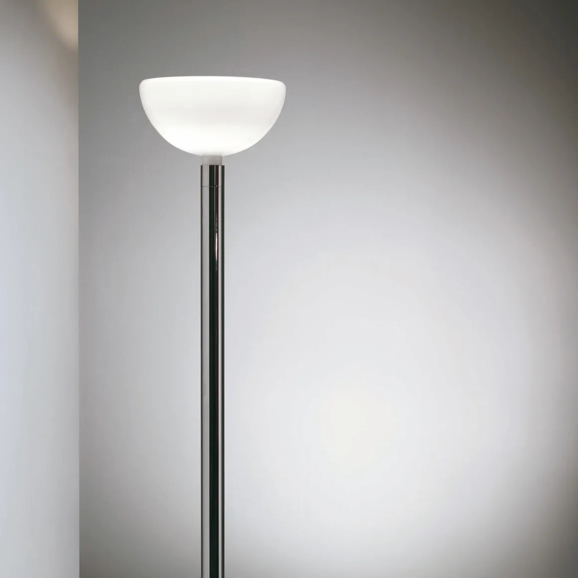 Die Nemo AM2C Terra Stehleuchte repräsentiert ein Gemeinschaftswerk der Designer Franco Albini, Franca Helg, Antonio Piva und Marco Albini und wurde 1969 entworfen. Mit ihrer klaren Formensprache und der glanzvollen Verchromung wirkt die Stehleuchte jedoch alles andere als altmodisch und macht gerade in modernen Einrichtungen eine gute Figur.