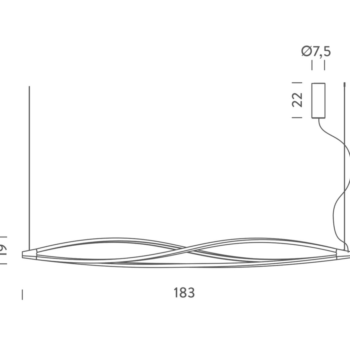 - Moderne Pendelleuchte aus drei elegant gewundenen Lichtstreben