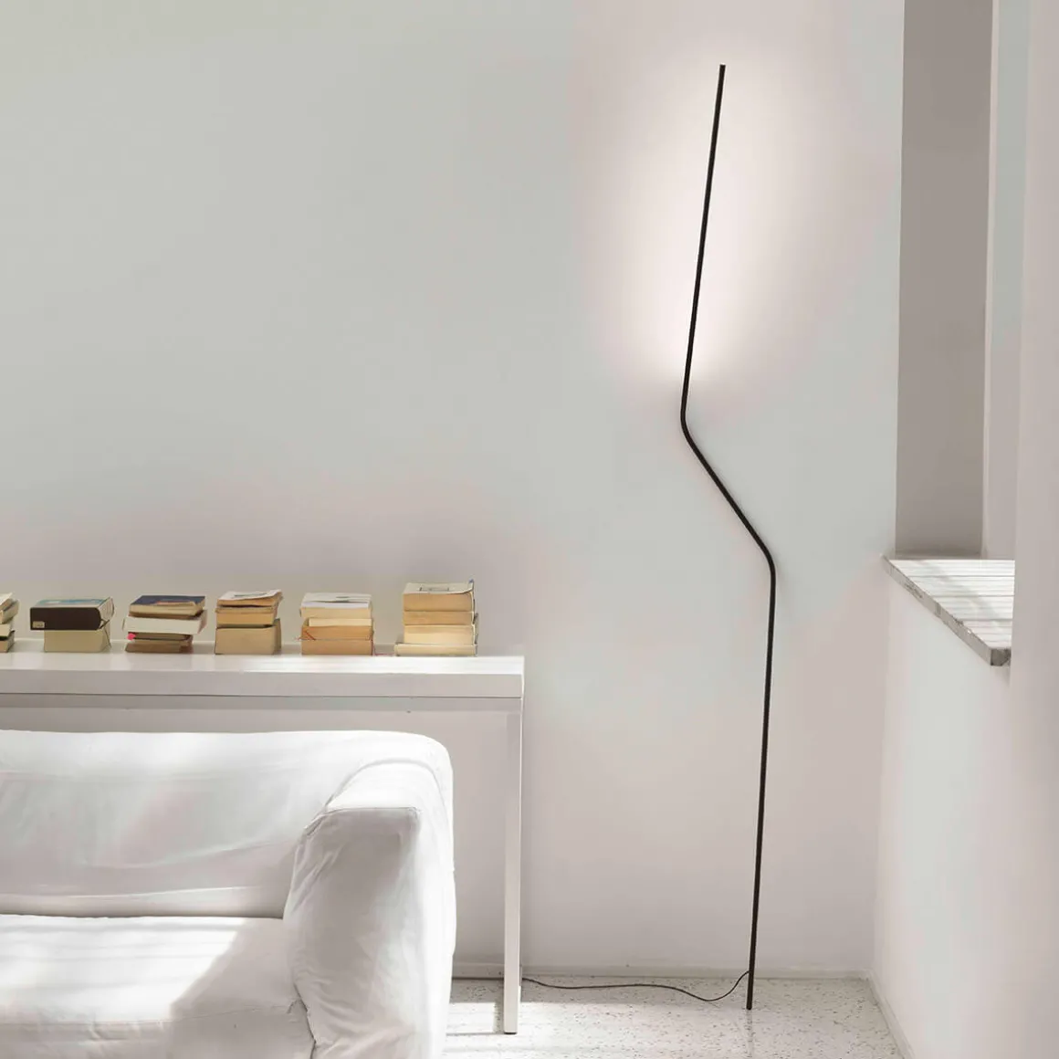 - Minimalistische Stehleuchte, die an die Wand gelehnt wird