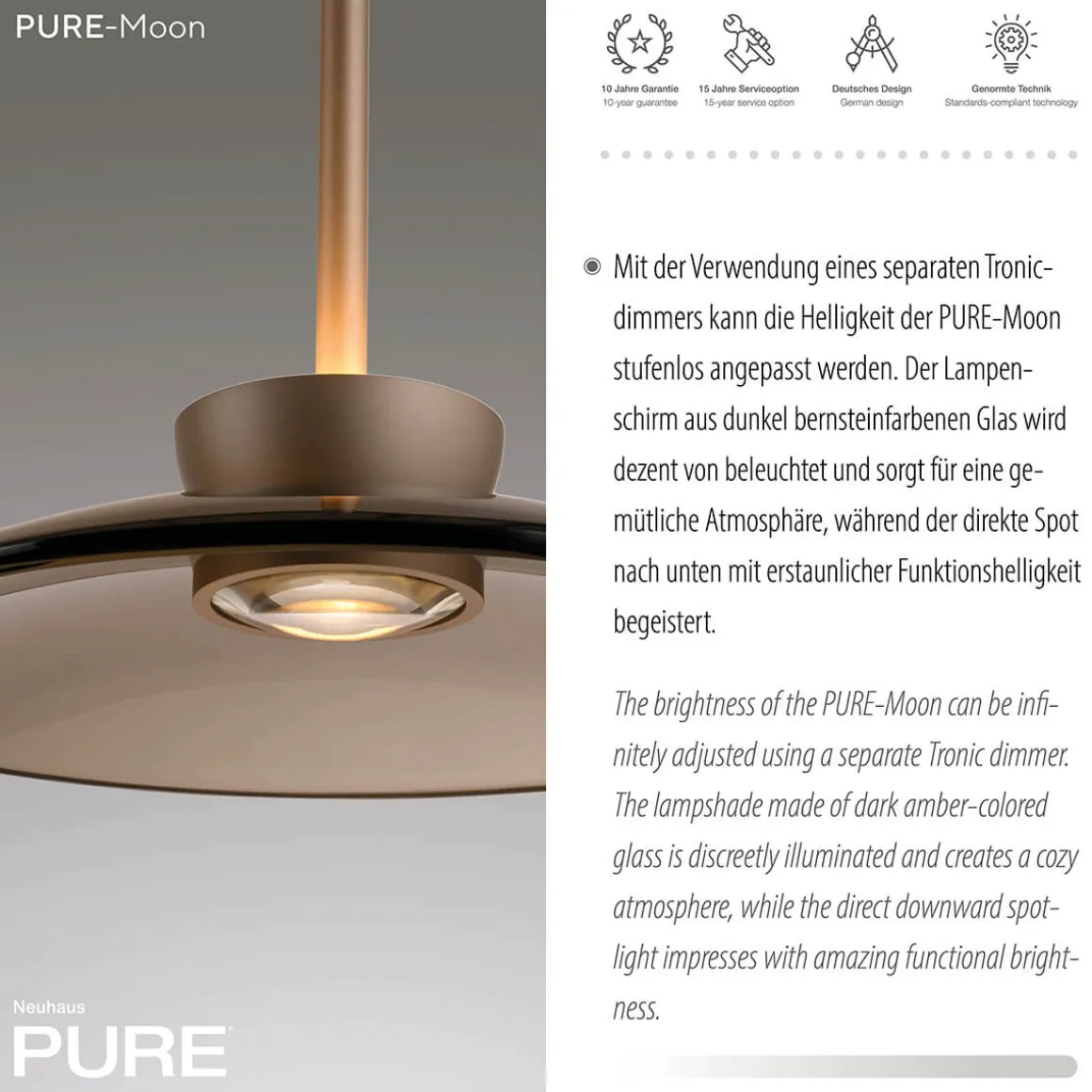 Design und Qualität vereint Die PURE Moon Pendelleuchte überzeugt durch präzise Verarbeitung und langlebige Materialien. Ihr minimalistisches Design fügt sich nahtlos in moderne und klassische Einrichtungsstile ein und setzt in jedem Raum stilvolle Akzente.