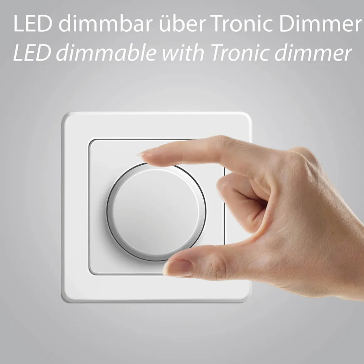 Ein besonderes Highlight ist die Dimmfunktion, die über einen separaten Tronic-Dimmer gesteuert werden kann. So lässt sich die Helligkeit flexibel anpassen – von sanft gedämpftem Licht für gemütliche Stunden bis hin zu heller Beleuchtung für klare Akzente.
