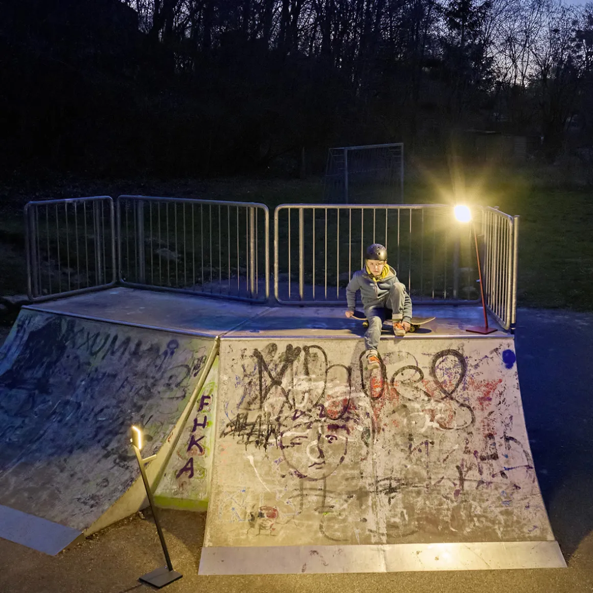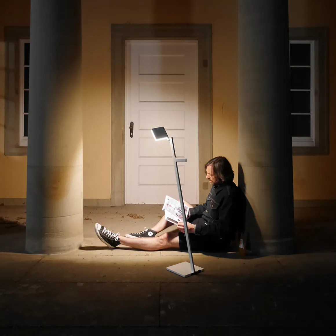 - Akkubetriebene, tragbare Stehlampe mit verstellbarem Leuchtenkopf