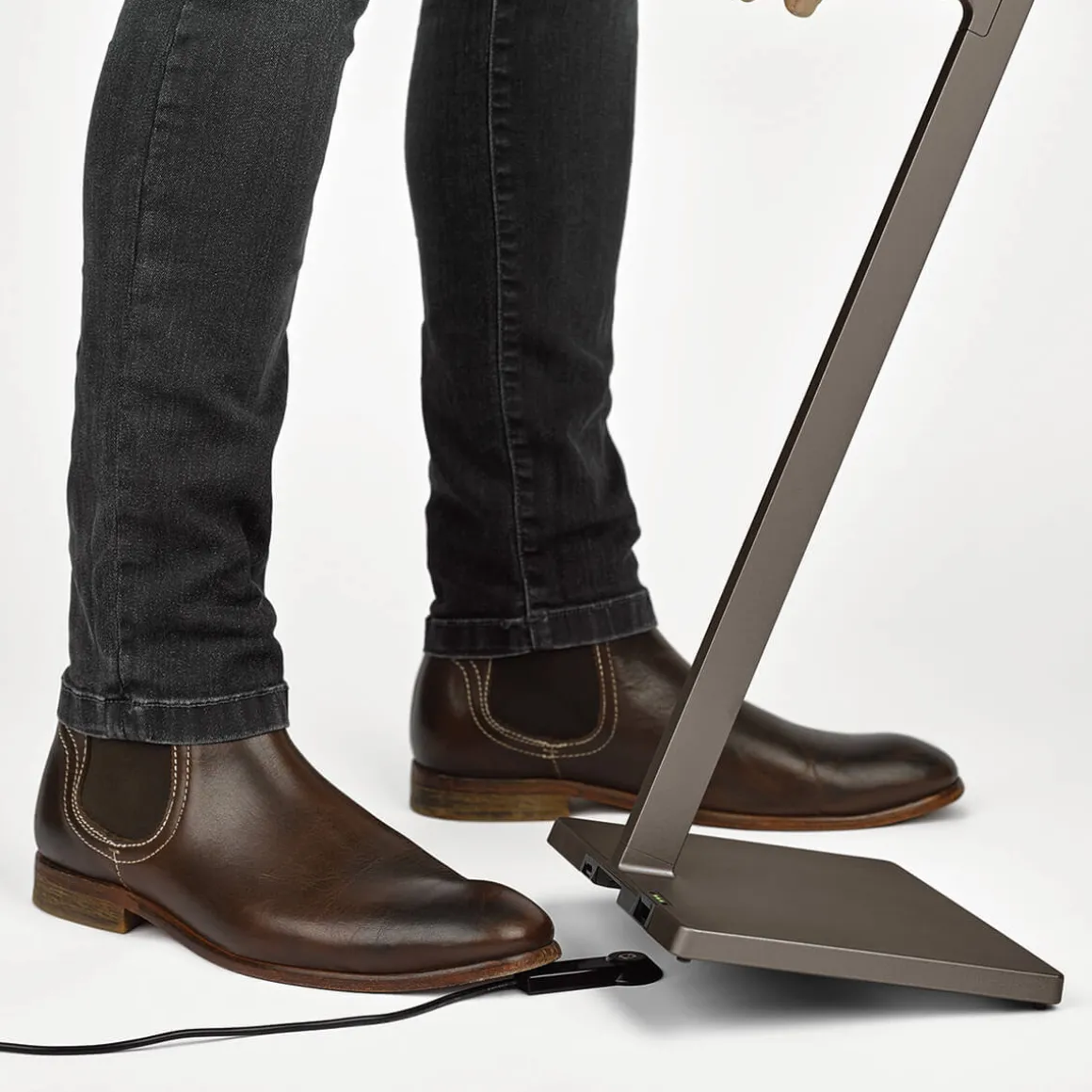 Noch einfacher gestaltet es sich mit dem beiliegenden magnetischen Ladepuck, dem Magnetic Dock: Führen Sie den Ladepuck an die hierfür vorgesehene Andockstation im Sockel heran, bis der Puck mit einem hörbaren Klacken einrastet. Soll die Stehlampe wieder vom Stromnetz getrennt werden, genügt es, den Ladepuck mit der Fußspitze sanft anzutippen, um die Verbindung zu lösen. Lästiges Bücken nach dem Stromkabel gehört damit der Vergangenheit an!