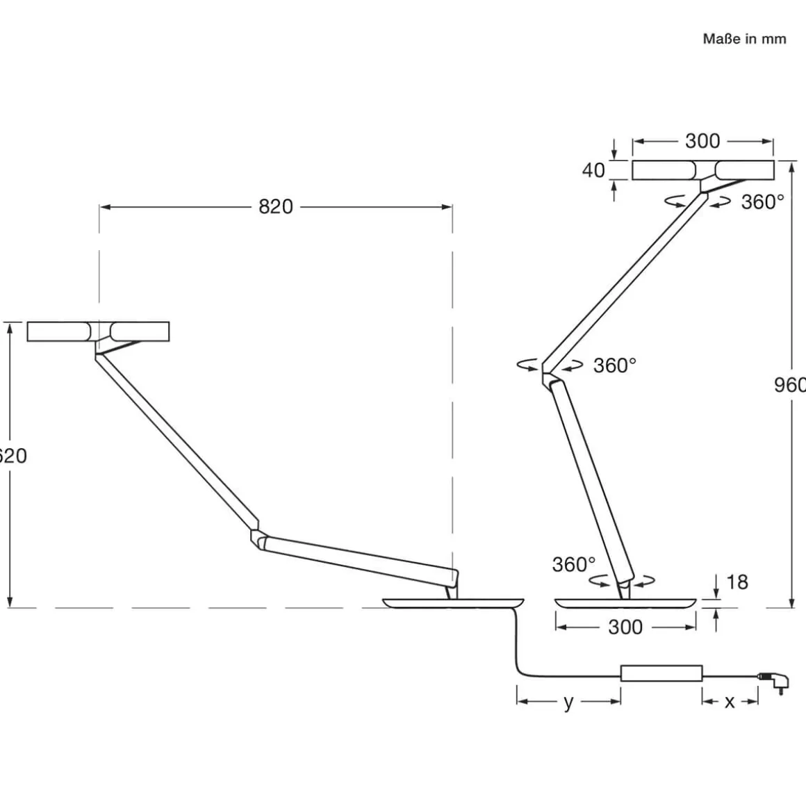 - Um 360° ohne Anschlag drehbare und höhenverstellbare Arme