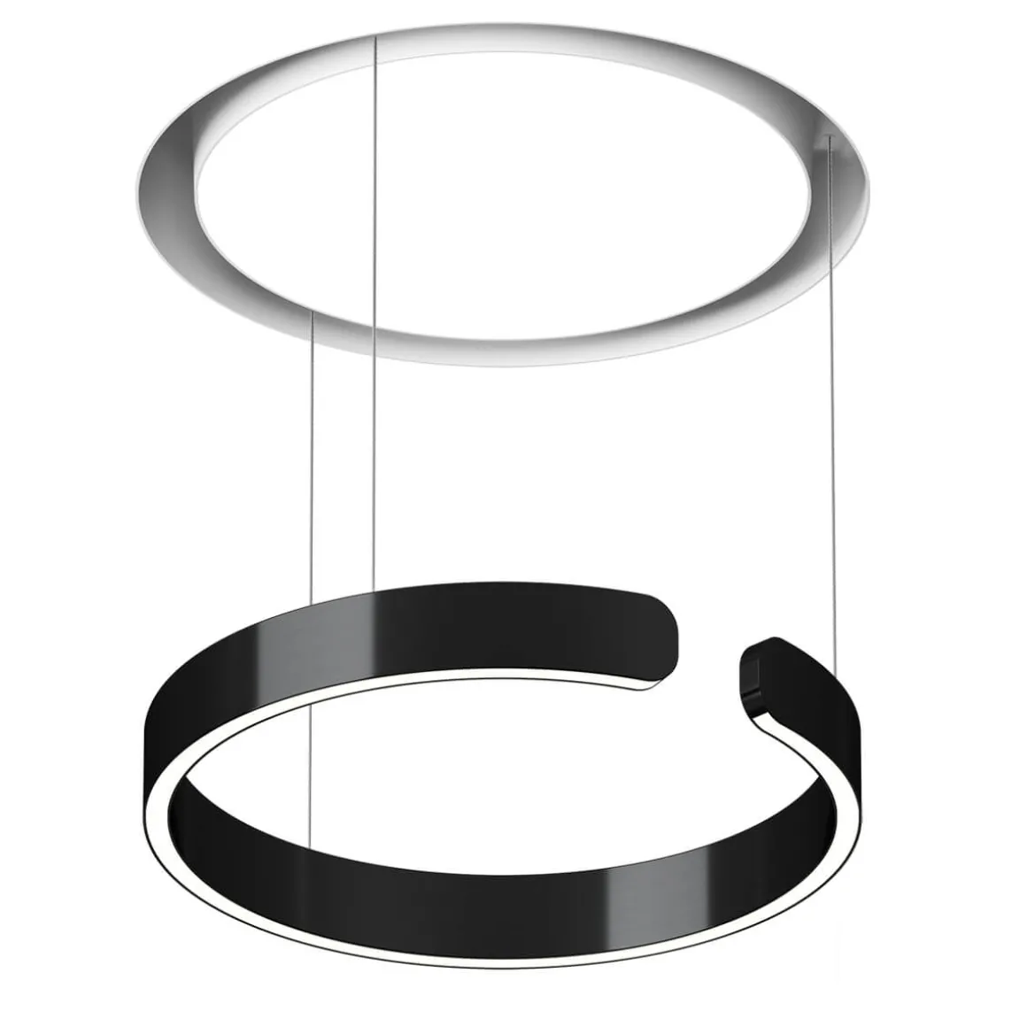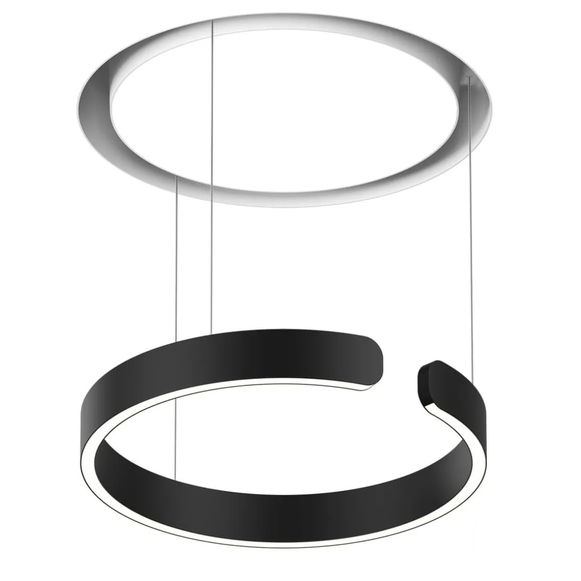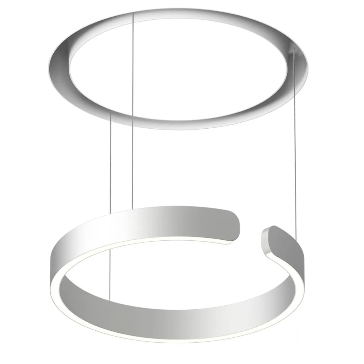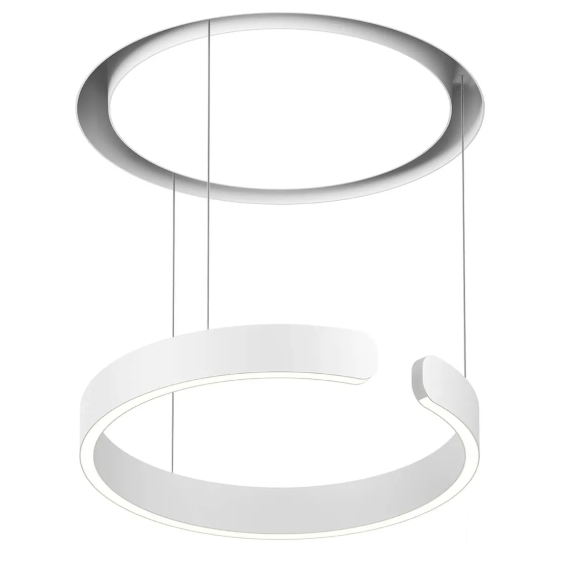 Geliefert wird die Occhio Mito cosmo 40 move „air“ narrow samt Einputzelement und mattweißem light channel, der die deckenbündige Montage der Pendelleuchte in Hohlraumdecken erlaubt. Die Pendellänge ist von 0 bis 200 cm einstellbar. Der ringförmige Leuchtenkopf kann vollständig in den light channel eingefahren werden, wodurch die scheinbar in der Decke verschwindet. Kurz vor dem Einfahren entsteht ein futuristisch anmutender Glow, der die Deckenfläche akzentuiert.