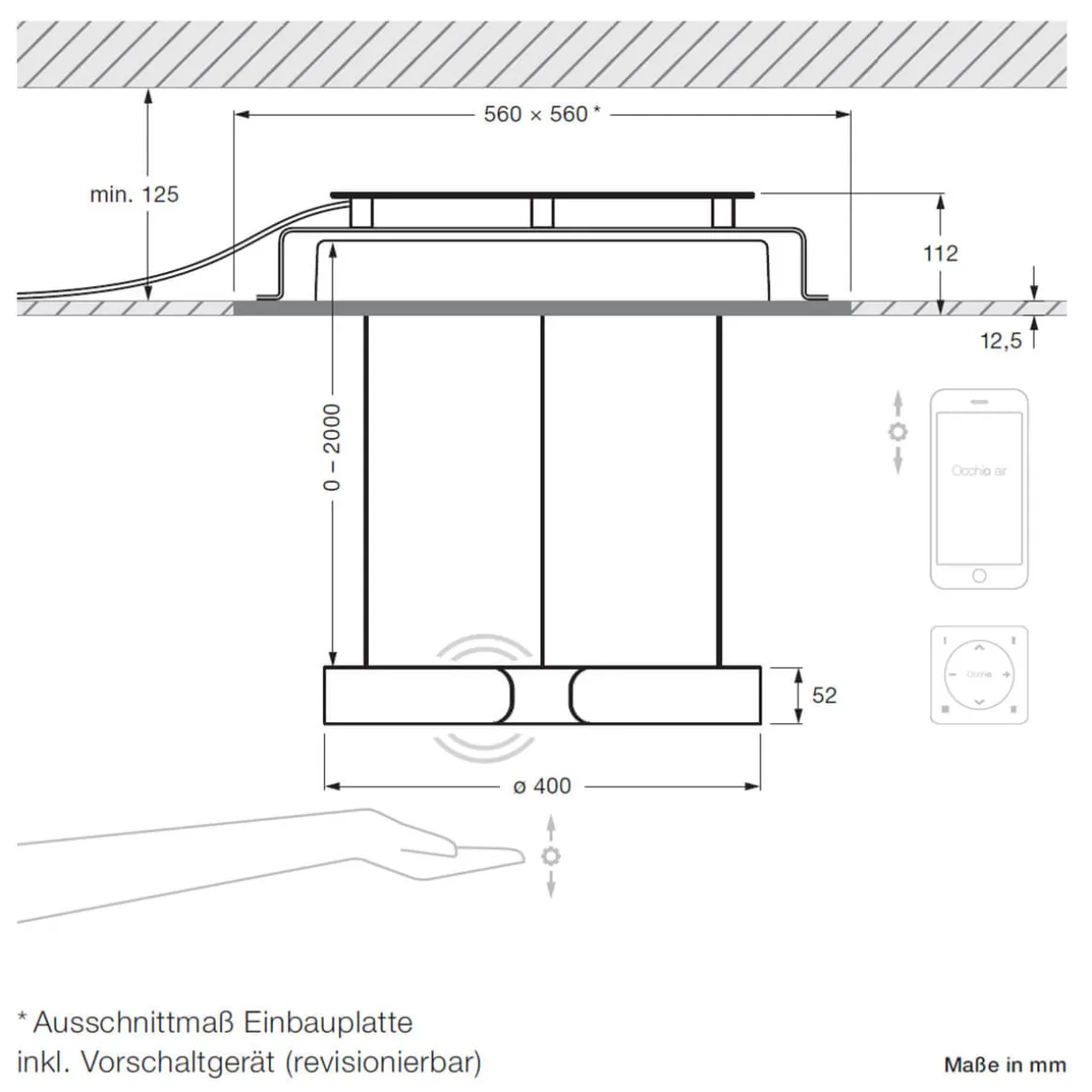 | Sonstige Maße: | Ausschnitt Einbauplatte: 56 x 56 cm |