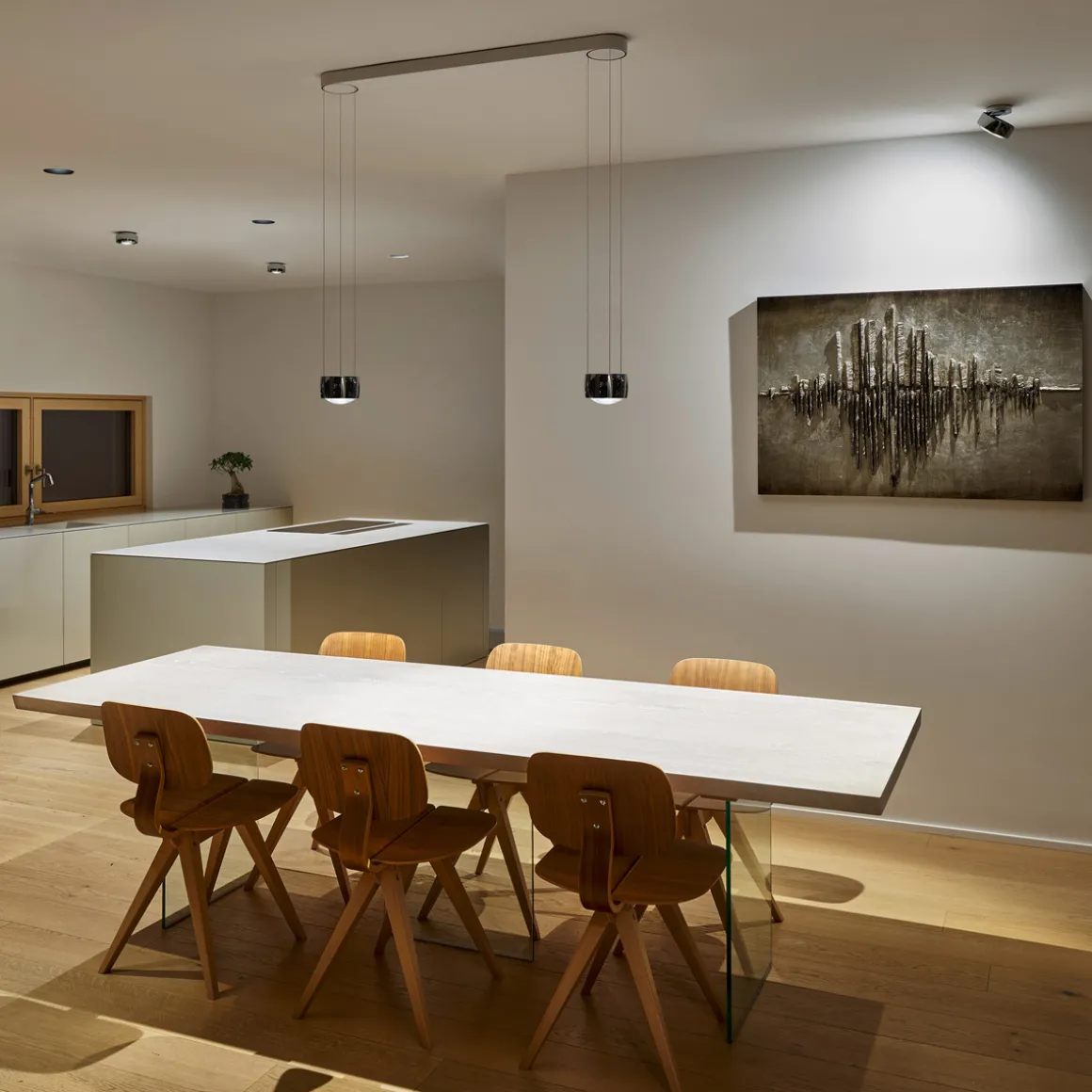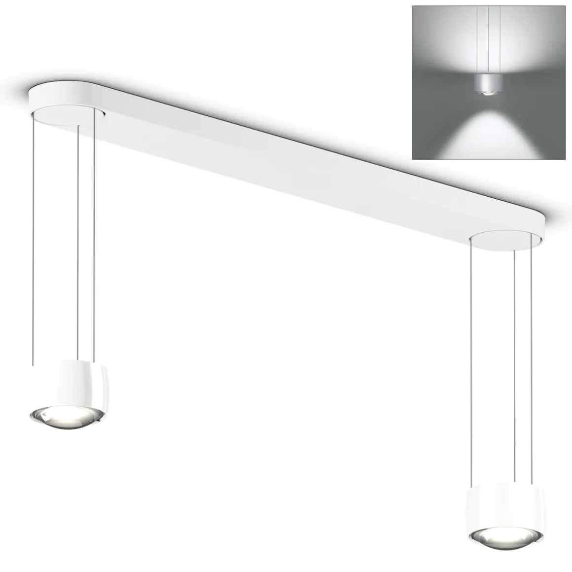 Sprechen Sie uns an, wenn Sie eine alternative Produktkonfiguration wünschen! Neben der abweichenden Pendellänge gibt es die Hängeleuchte auch mit einer von 3.000 Kelvin sowie beidseitig mit Linsen bestückten Leuchtenköpfen (Konfiguration D).