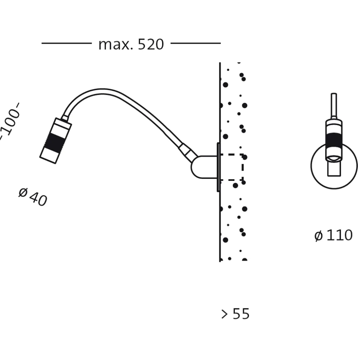 | Material/Oberfläche: | Alu poliert / schwarz eloxiert, Flexarm: Textilüberzug |