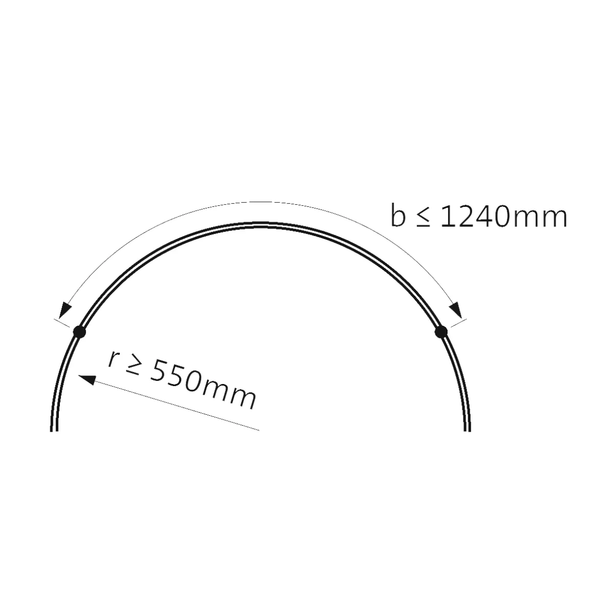 Achtung: Bitte nennen Sie uns bei Bestellabschluss den gewünschten Radius Ihrer Schiene! Der Artikel wird auftragsbezogen gefertigt und erfordert eine kundenspezifische Maßangabe. Diese können Sie uns im dafür vorgesehenen Kommentarfeld mitteilen.