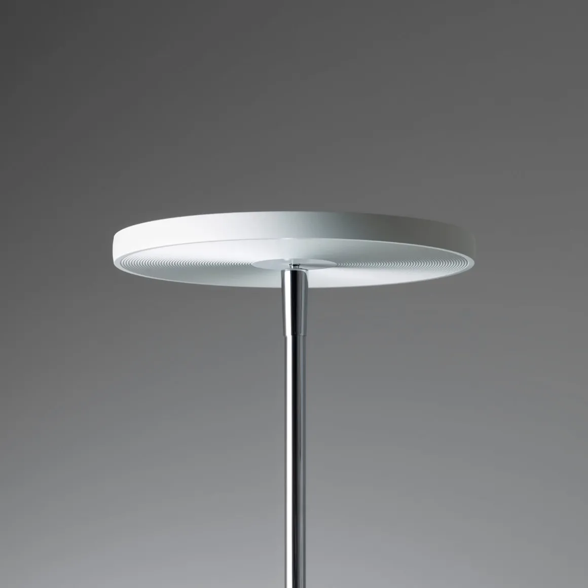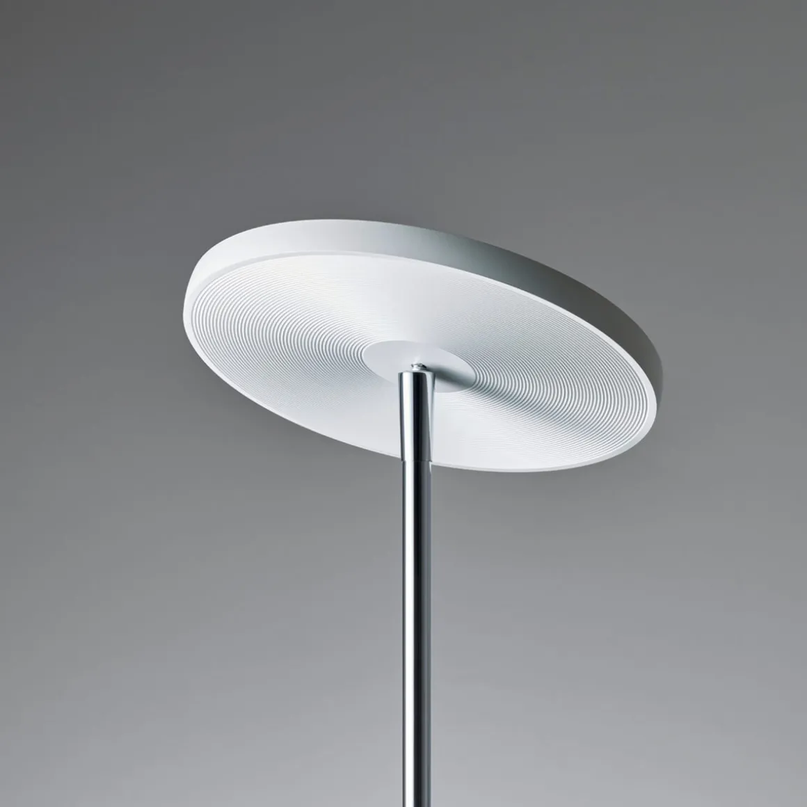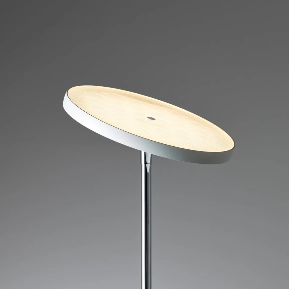 Der Leuchtenkopf, ein flacher Diskus aus massivem Aluminium, lässt sich um 340° drehen und um 25° schwenken. Dies ermöglicht eine gezielte Ausrichtung des Lichtaustritts, um dunkle Bereiche effektiv zu erhellen und Blendungen zu vermeiden. Die hochwertige, vielfach facettierte Prismatik sorgt für eine besonders weiche , die typisch für Oligo LED-Leuchten ist. Das Licht erstrahlt sanft und verläuft zu den Rändern hin weich aus, was ein harmonisches, homogenes Lichtbild erzeugt.