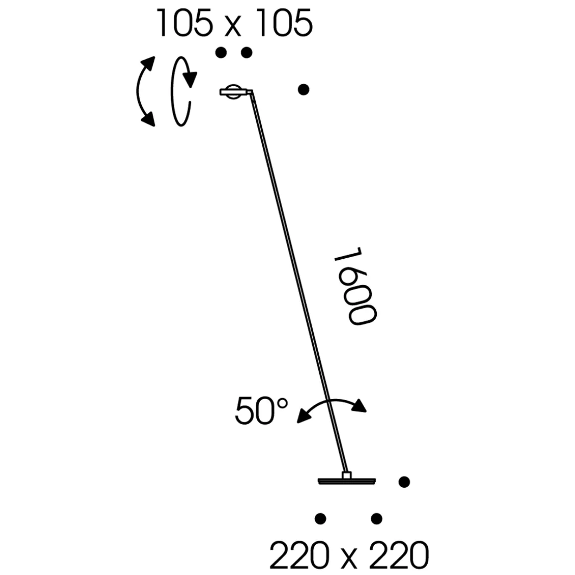 - Mehrachsig dreh- und schwenkbar dank justierbaren Kugelgelenken in Fuß und Schirm