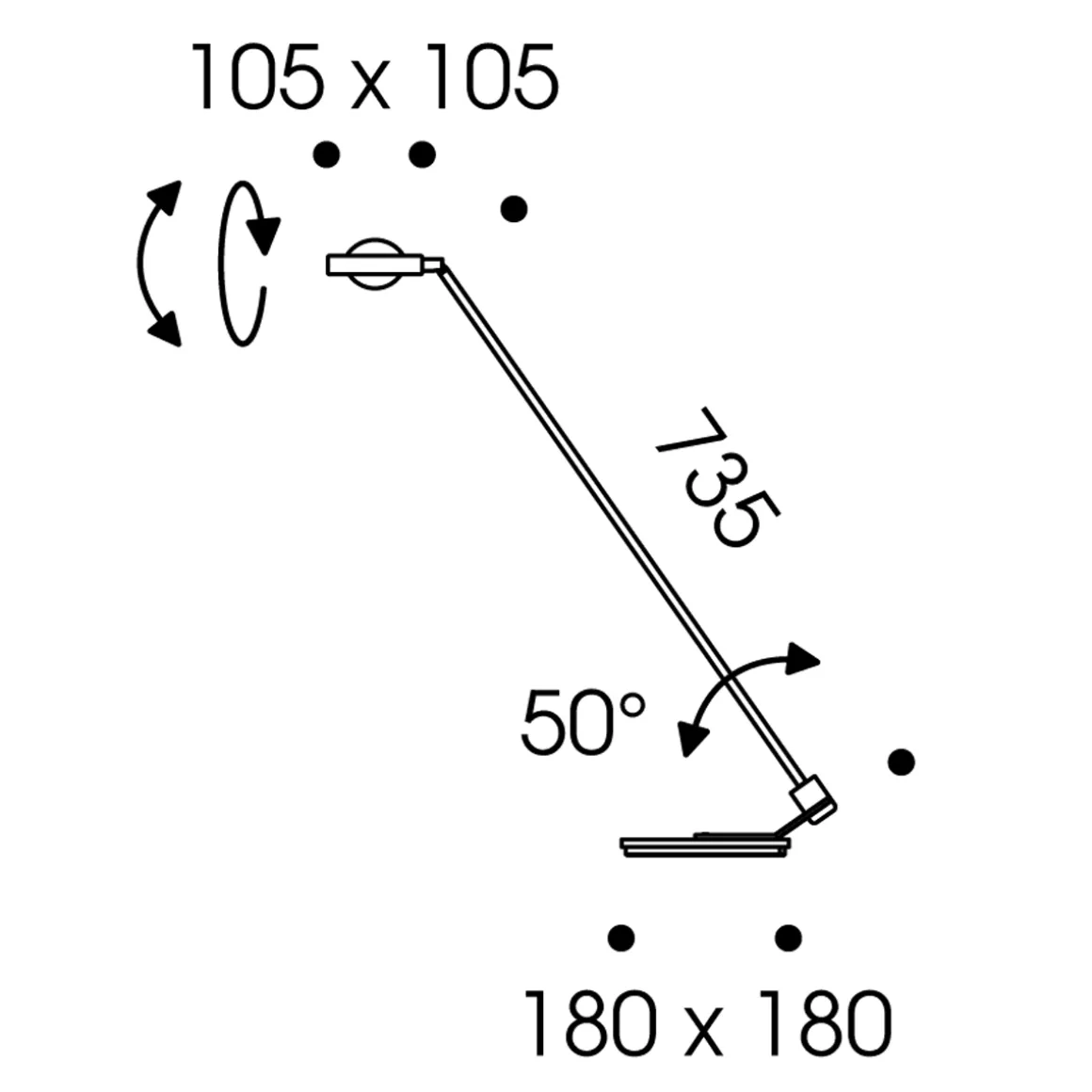 - Mehrachsig dreh- und schwenkbar dank justierbaren Kugelgelenken in Fuß und Schirm