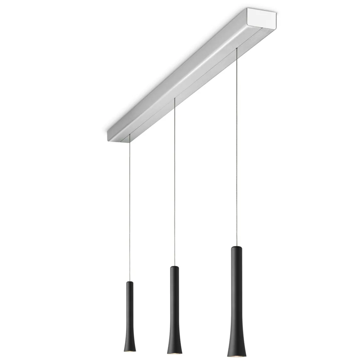 Die dreiflammige Oligo Rio LED Pendelleuchte ist eine funktionelle, zugleich stilvolle Lichtquelle, die sich vor allem über länglichen Esstischen empfiehlt. Die verfügt über einen unsichtbar im Baldachin integrierten Kabelaufzug, der eine stufenlose Höhenverstellerung ermöglicht (Verstellbereich 70 bis 230 cm). Durch einfaches Bewegen der Leuchtenpendel lässt sich die Pendelhöhe wunschgerecht einstellen – leichtgängig und komfortabel.