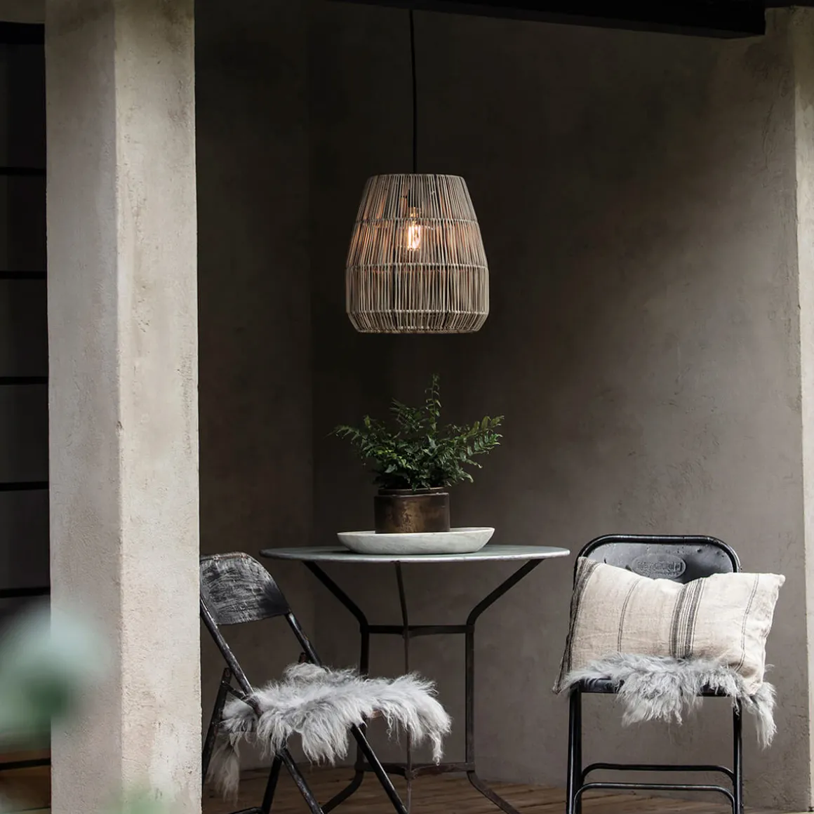 Die einzigartige Struktur des geflochtenen Lampenschirms kreiert ein zauberhaftes Lichtspiel, das Ihr Zuhause in ein stimmungsvolles Ambiente taucht. Dies macht die Pendellampe, die in drei verschiedenen Größen erhältlich ist, zur idealen Lichtquelle in Garten und Wintergarten. Zur Stromversorgung ist die Saigon Outdoor mit einem 2,5 Meter langen, wetterfesten Kabel ausgestattet. Bitte beachten Sie, dass das nicht im Lieferumfang inbegriffen ist.