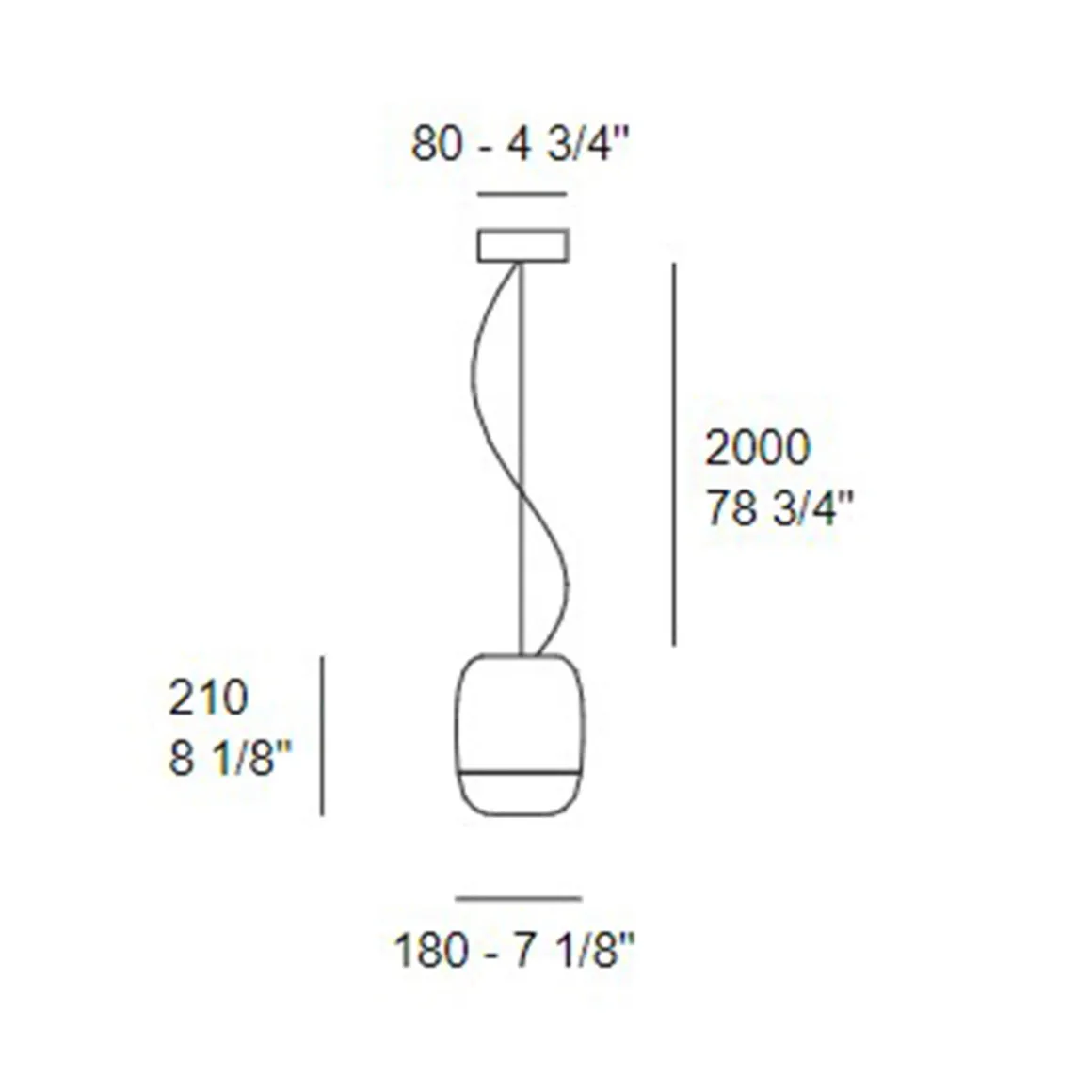 Prandina Gong S1 Pendelleuchte: modernes Pendel mit mundgeblasenem Glasschirm