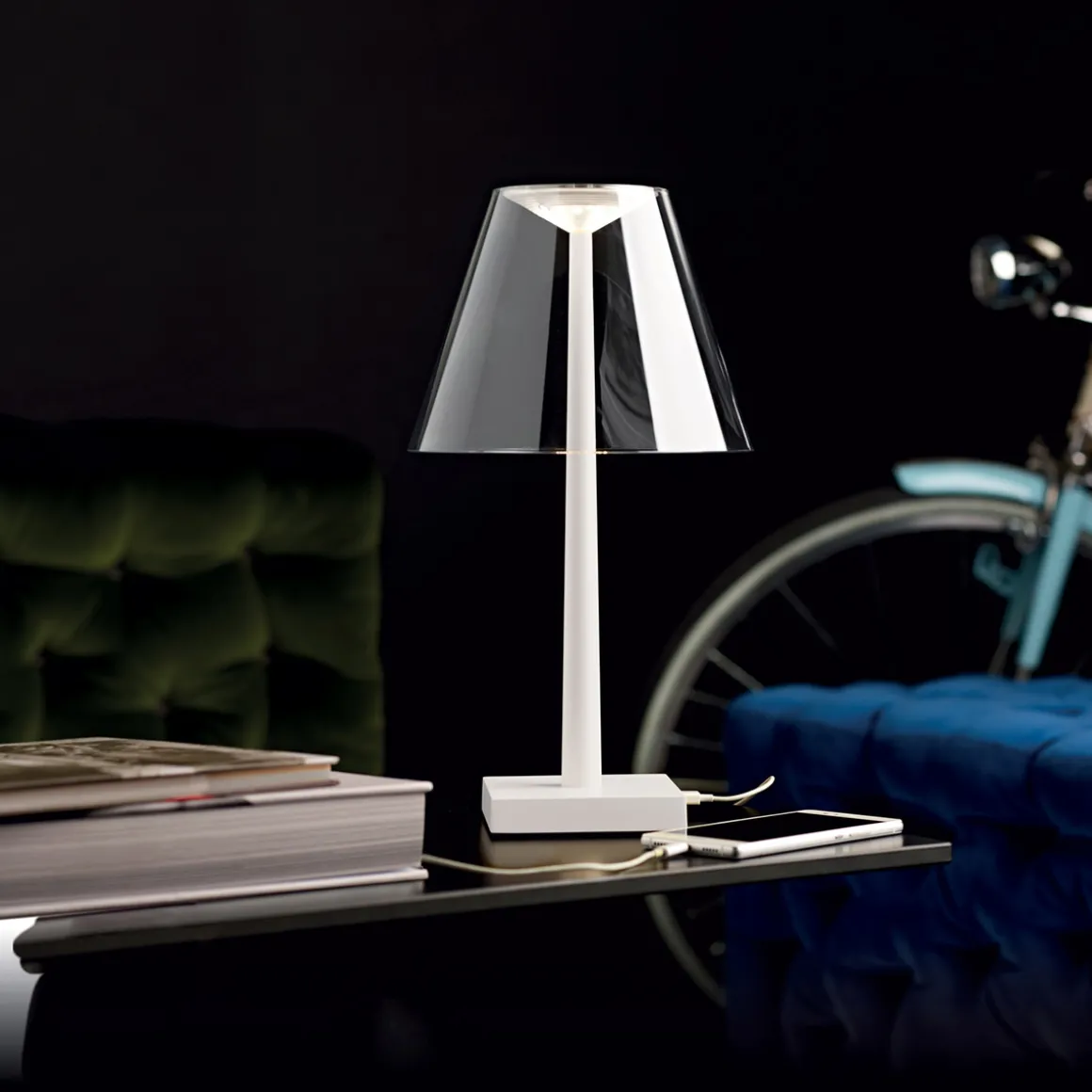 Ein weiterer Clou: Die Rotaliana Dina+ LED verfügt über eine wiederaufladbare Batterie, sodass die Tischlampe an beliebiger Stelle im Raum platziert werden kann. Die Suche nach einer Steckdose hat sich damit erübrigt, ebenso das Kaschieren lästiger Leuchtenkabel.