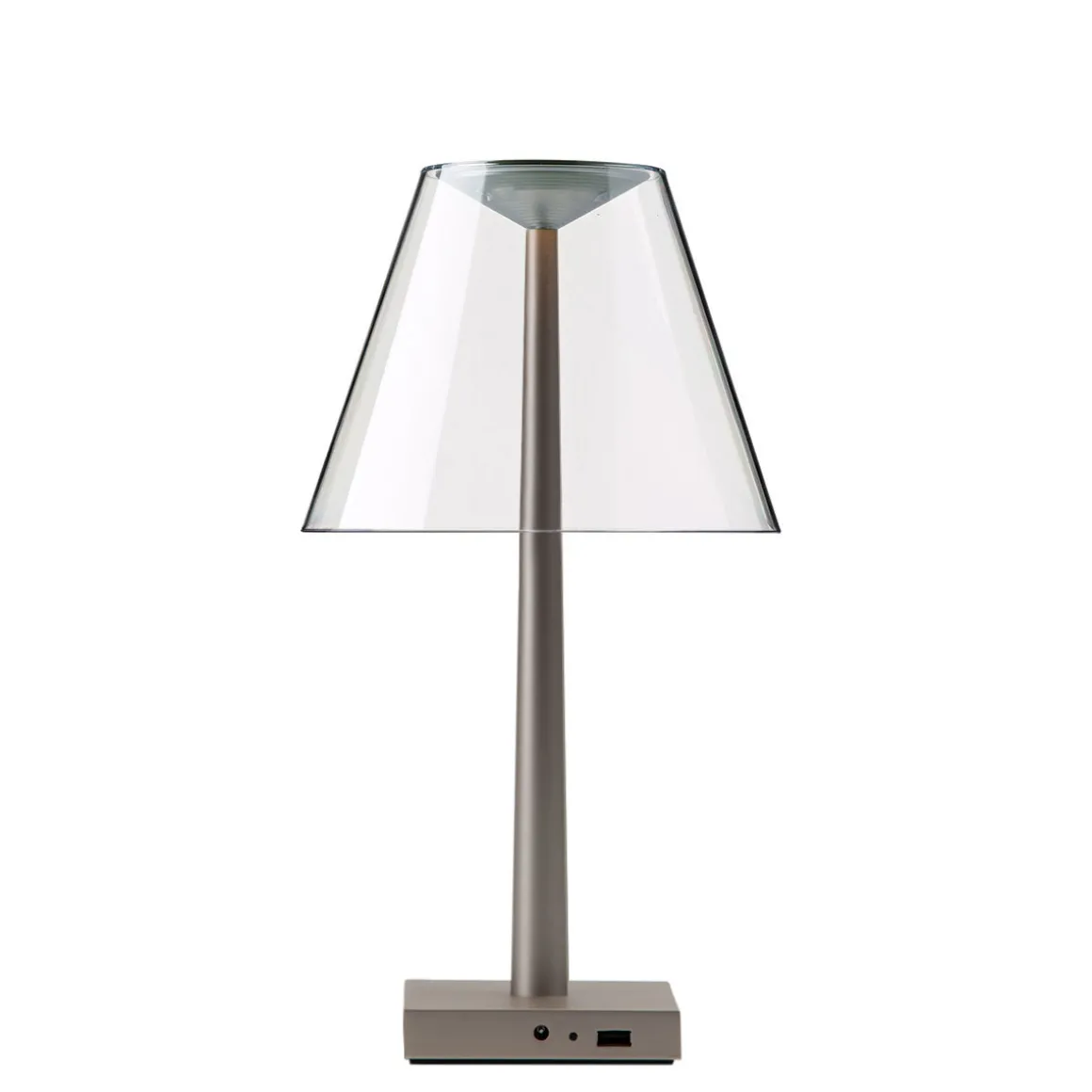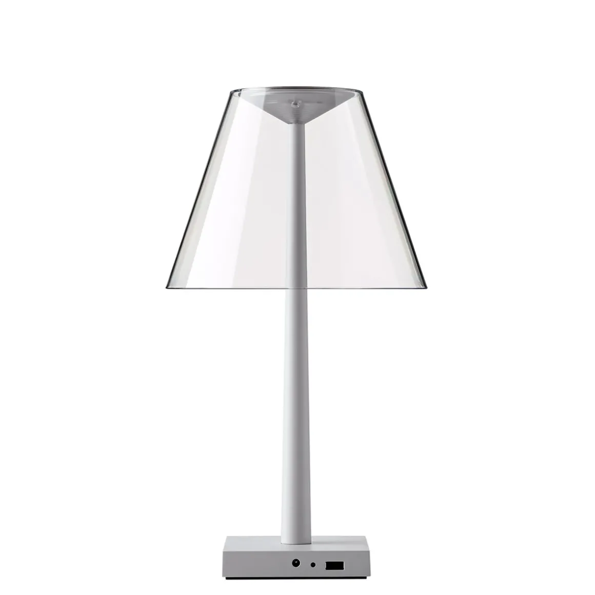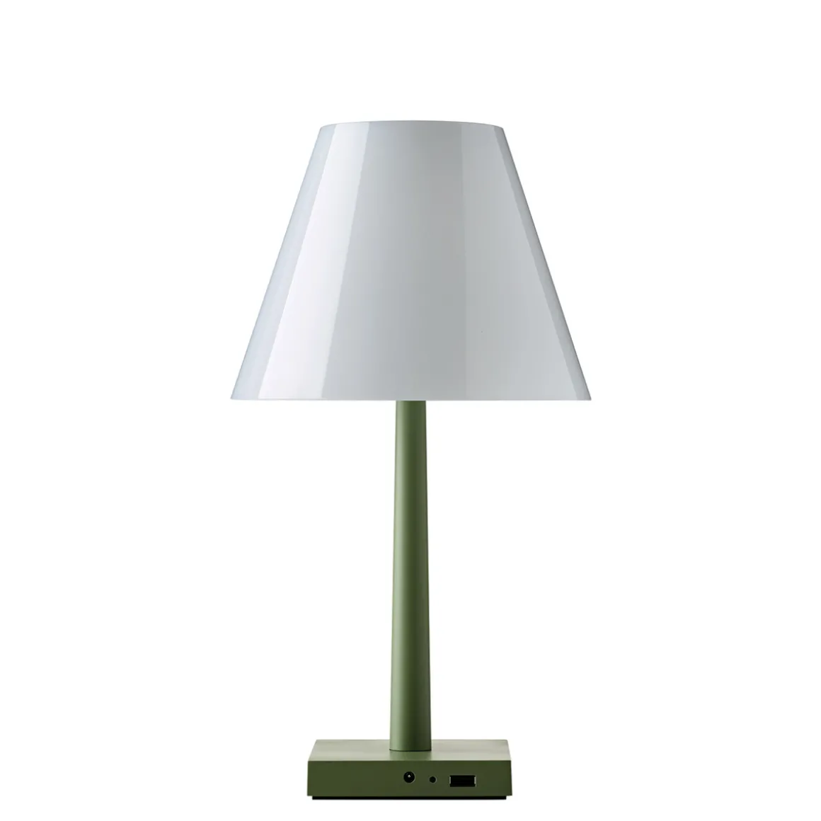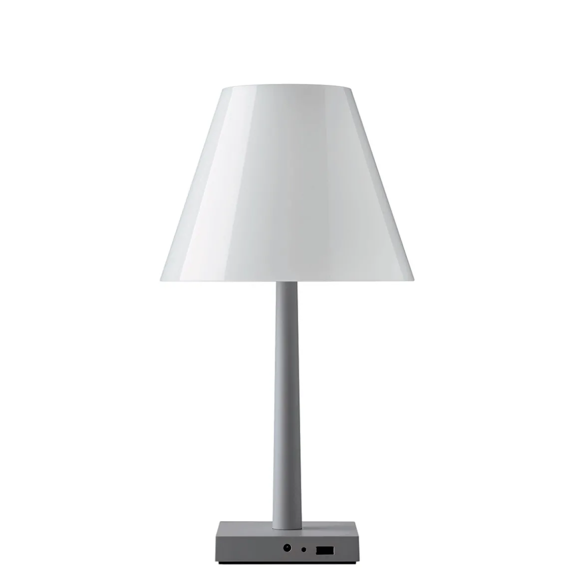 Die Dina+ LED ergänzt die Kollektion multifunktionaler Lichtobjekte, die das italienische Designerduo Dante Donegani und Giovanni Lauda für Rotaliana entworfen hat. Im Gegensatz zur ebenfalls kabellosen Akkulampe Chiardiluna LED zeigt sich die Dina+ von einer eher klassischen Formensprache inspiriert. Der archetypische Schirm aus Polycarbonat zerstreut das Licht auf sanfte Weise und verbirgt die alles andere als klassische LED-Lichtquelle. Als Basis dient ein Fuß aus Aluminium, der mit einem USB-Port ausgestattet ist – ein praktisches Detail, das es ermöglicht, Smartphones oder Tablets über die aufzuladen.