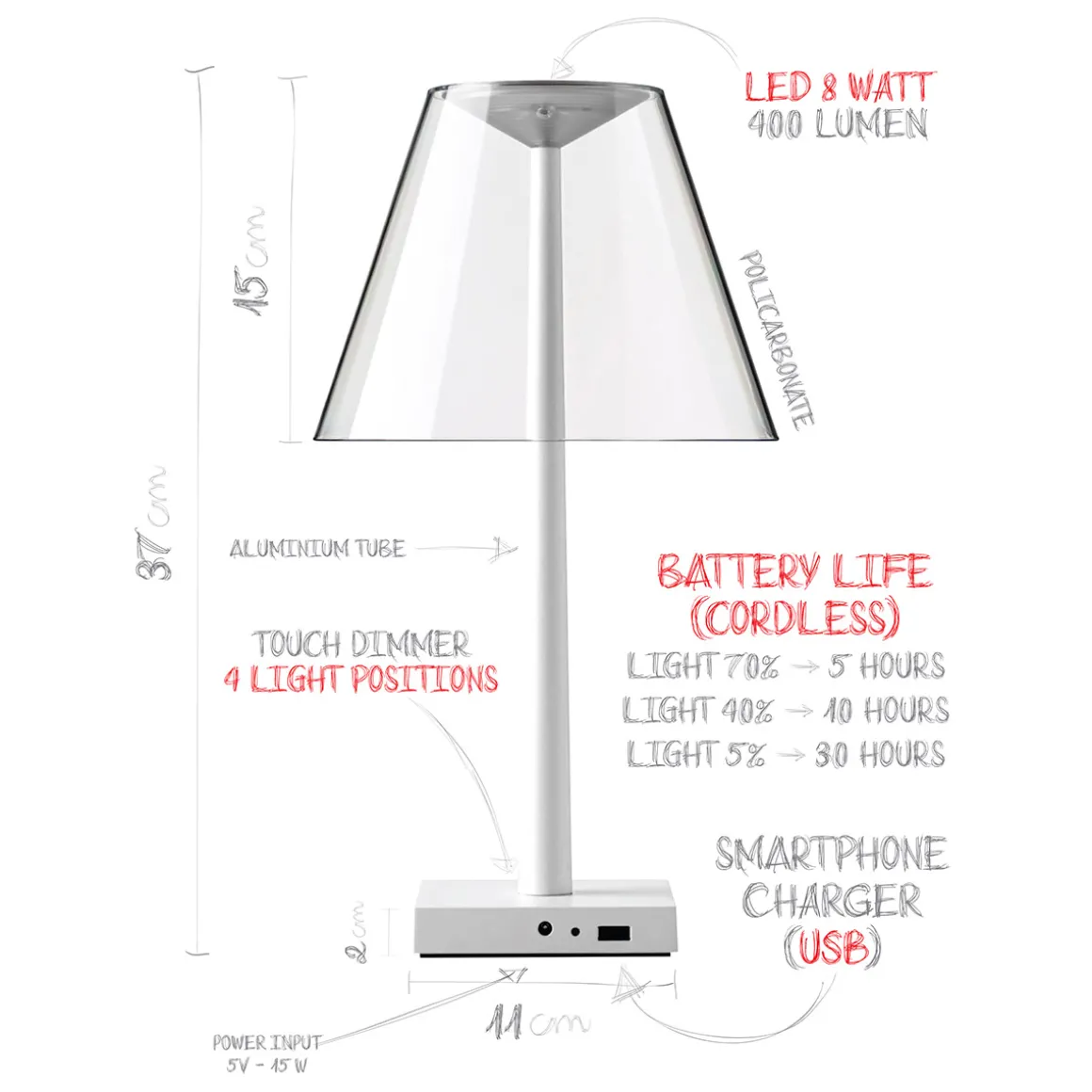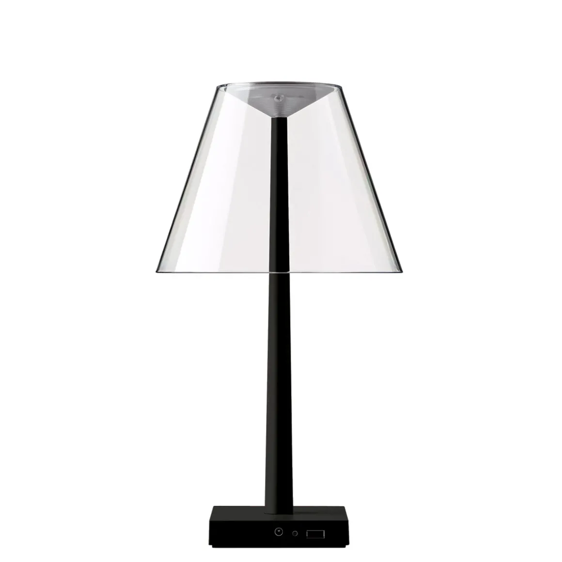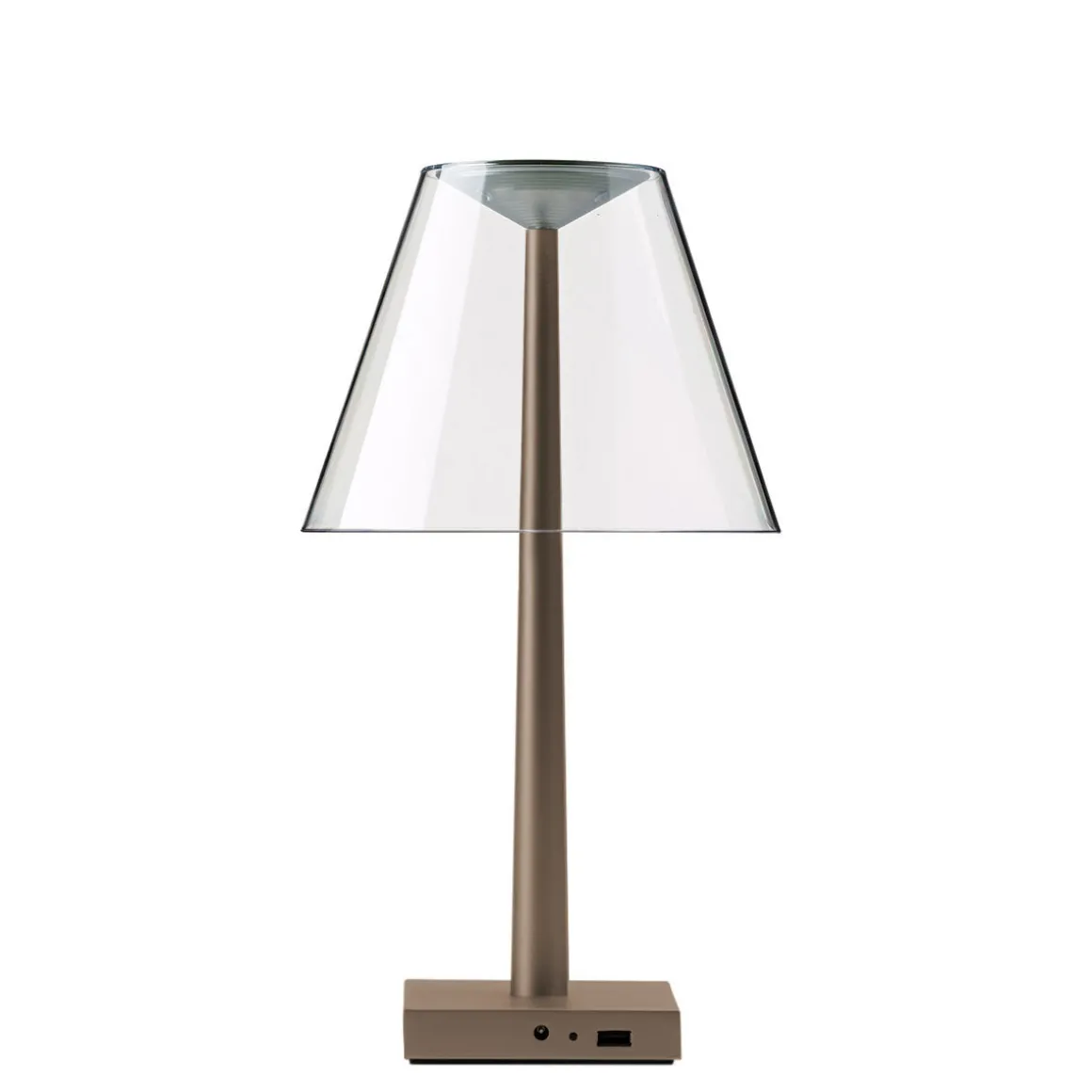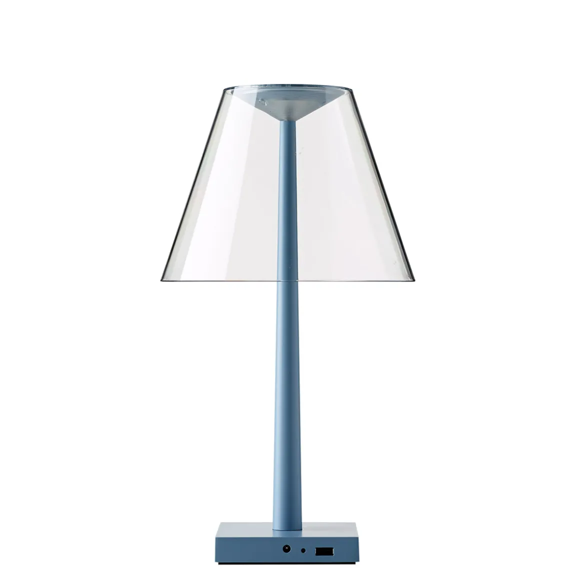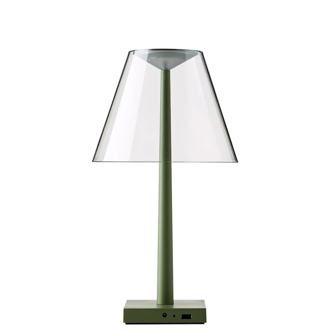 Die Dina+ LED ergänzt die Kollektion multifunktionaler Lichtobjekte, die das italienische Designerduo Dante Donegani und Giovanni Lauda für Rotaliana entworfen hat. Im Gegensatz zur ebenfalls kabellosen Akkulampe Chiardiluna LED zeigt sich die Dina+ von einer eher klassischen Formensprache inspiriert. Der archetypische Schirm aus Polycarbonat zerstreut das Licht auf sanfte Weise und verbirgt die alles andere als klassische LED-Lichtquelle. Als Basis dient ein Fuß aus Aluminium, der mit einem USB-Port ausgestattet ist – ein praktisches Detail, das es ermöglicht, Smartphones oder Tablets über die aufzuladen.